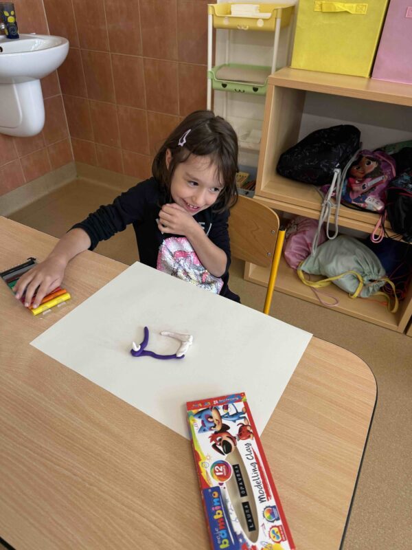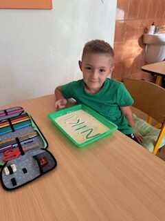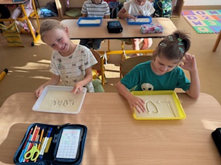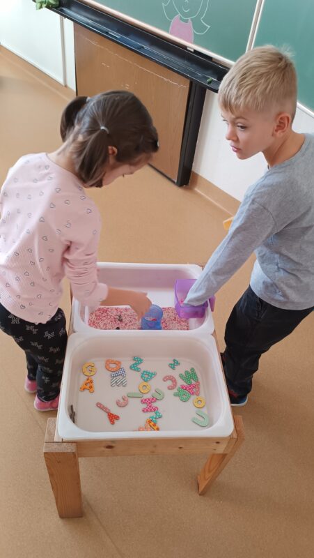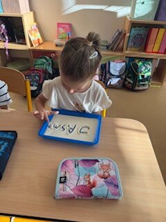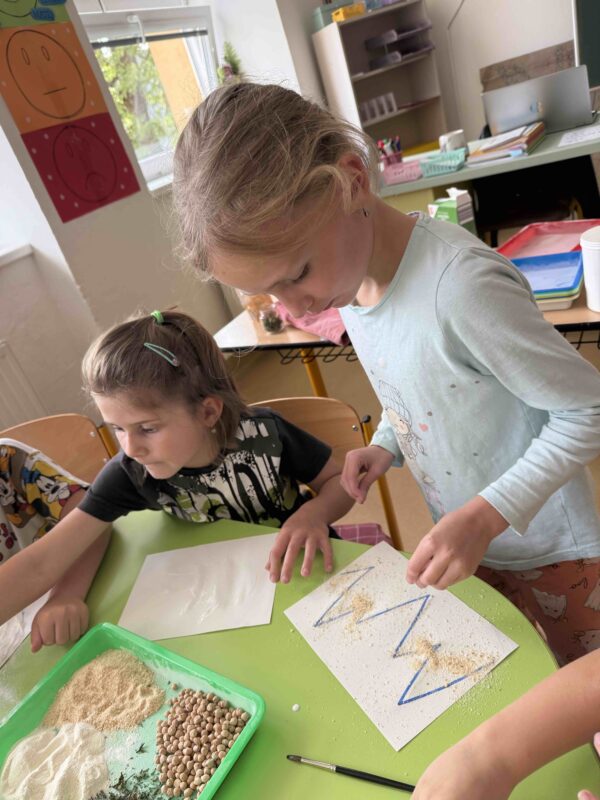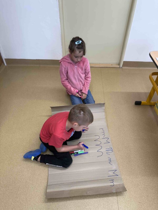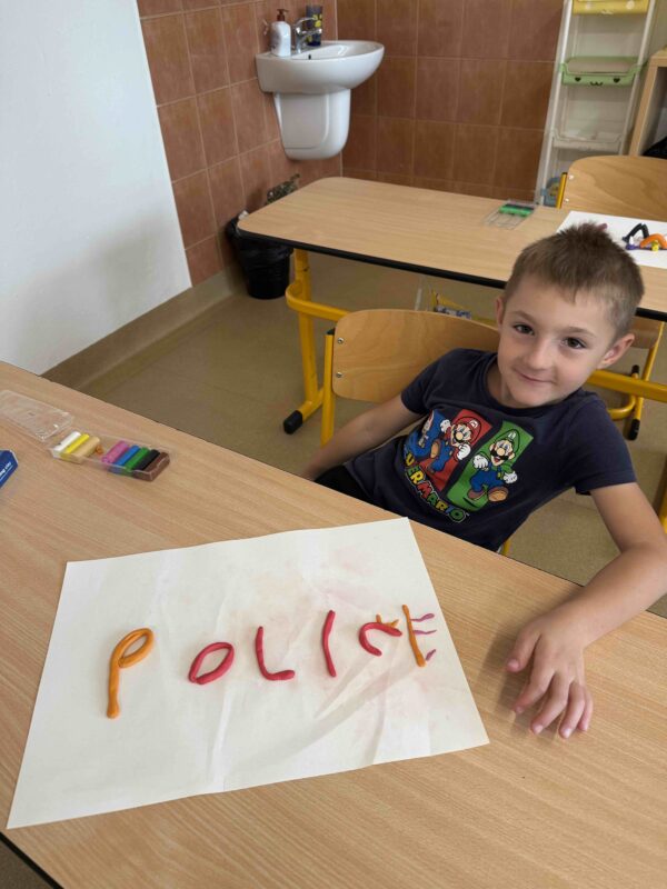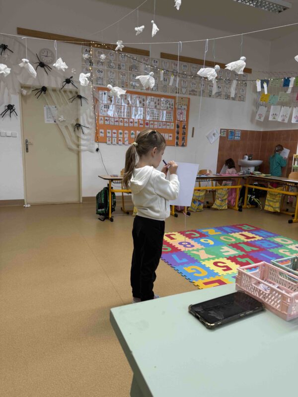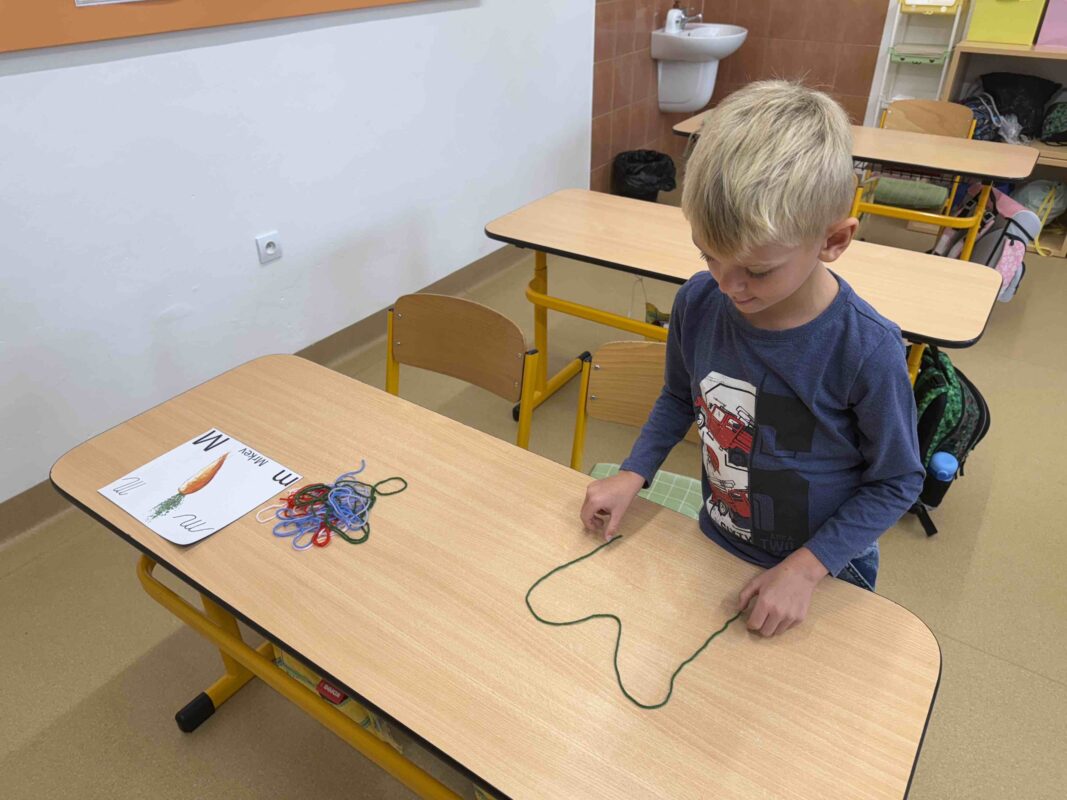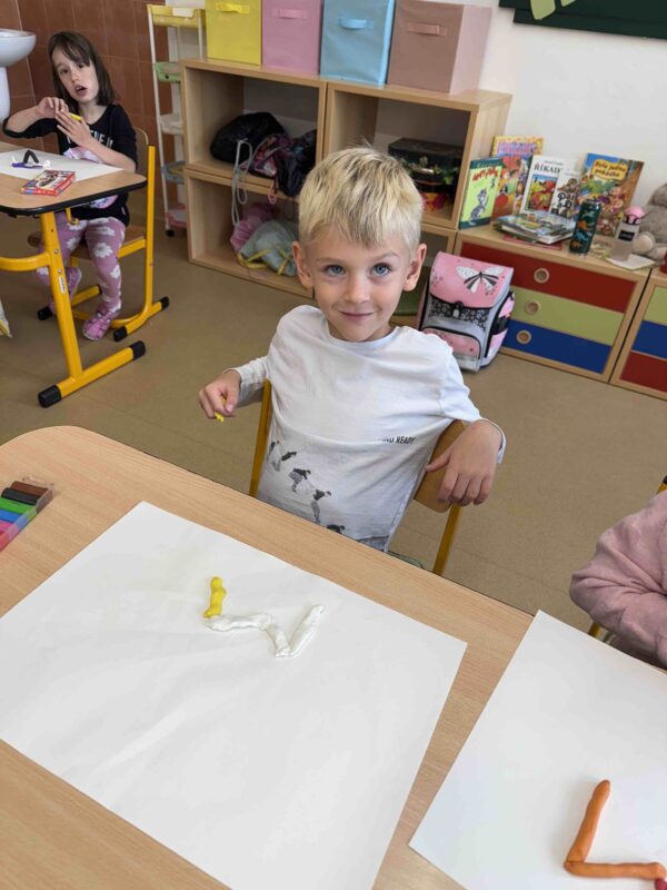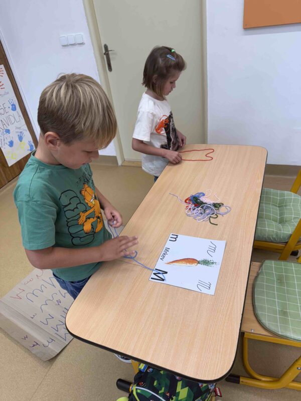 Každé dítě si mohlo vyzkoušet psaní vlastního jména a hraní si s tvary písmen, a přitom si udržovalo pozornost a soustředění. Aktivita byla kombinací učení a hry, díky čemuž děti psaní opravdu bavilo.