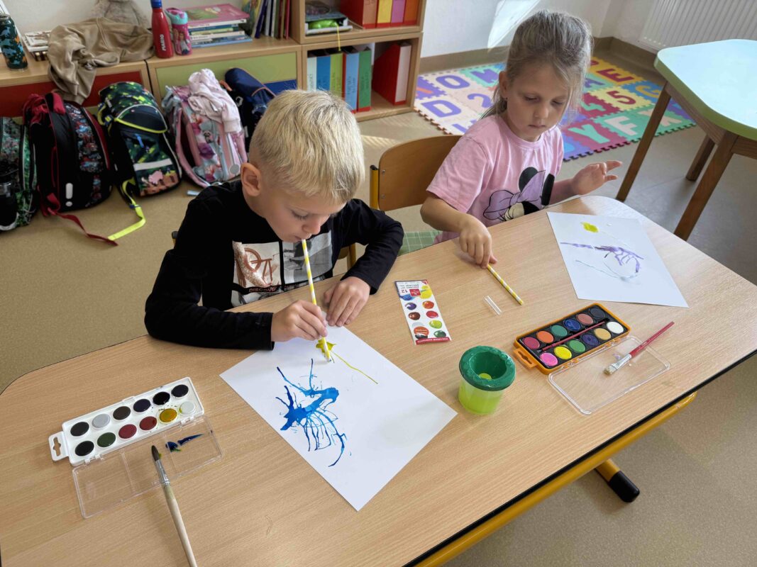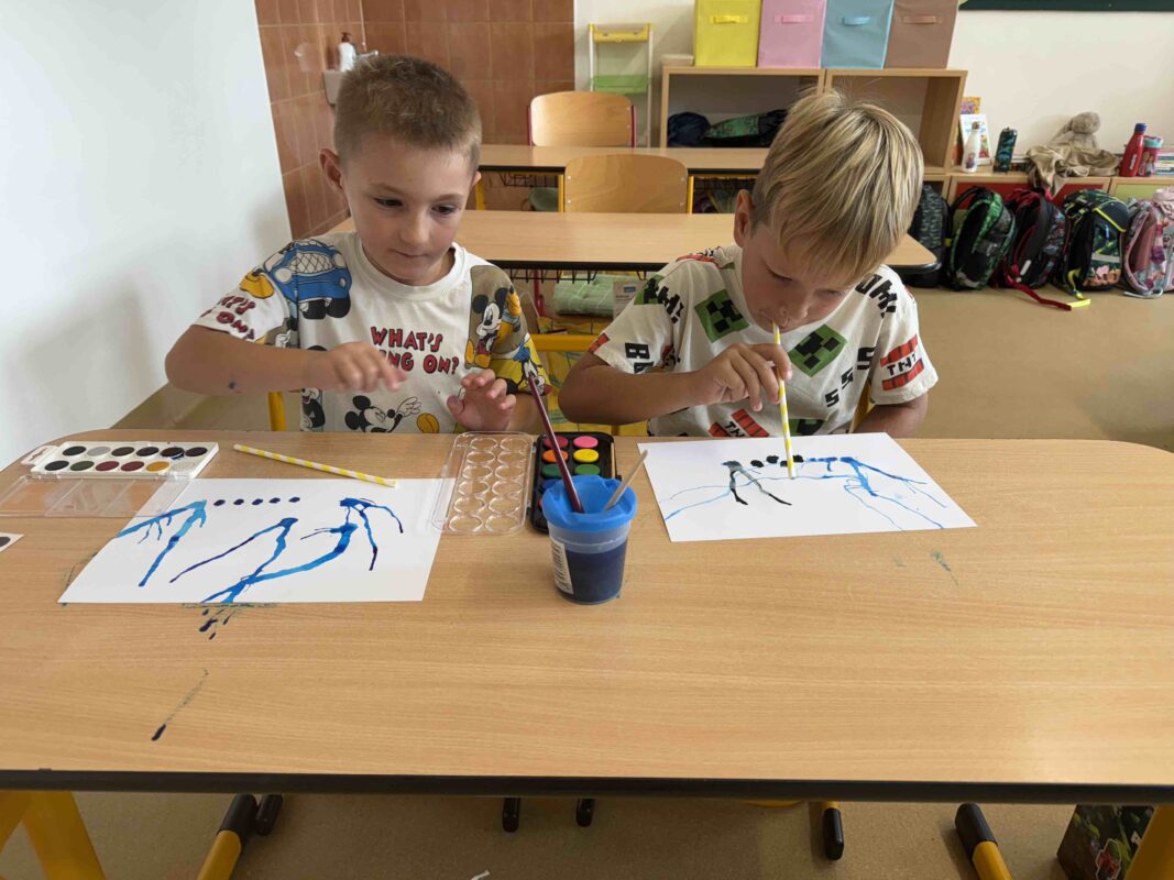 V naší třídě jsme si tento týden vyzkoušeli netradiční výtvarnou techniku – foukaná strašidla. Děti při tvorbě nejen zapojily svou představivost a fantazii, ale zároveň si procvičily i kapacitu plic. Výsledkem jsou originální strašidelné postavičky, které ozdobily naši třídu a přinesly spoustu radosti i smíchu. V hudební výchově jsme se přenesli do světa klasické hudby. Poslechli jsme si „Podzim“ z cyklu Čtvero ročních dob Antonia Vivaldiho. Abychom hudbu vnímali opravdu naplno, hledali jsme v ní zvuky a nálady podzimu zábavnou a hravou formou. Děti dokázaly v hudbě rozpoznat bouřku, vítr, tanec i klidné chvíle. Byl to den plný tvořivosti, fantazie a objevování hudebních i výtvarných zážitků. (12.09.2025)