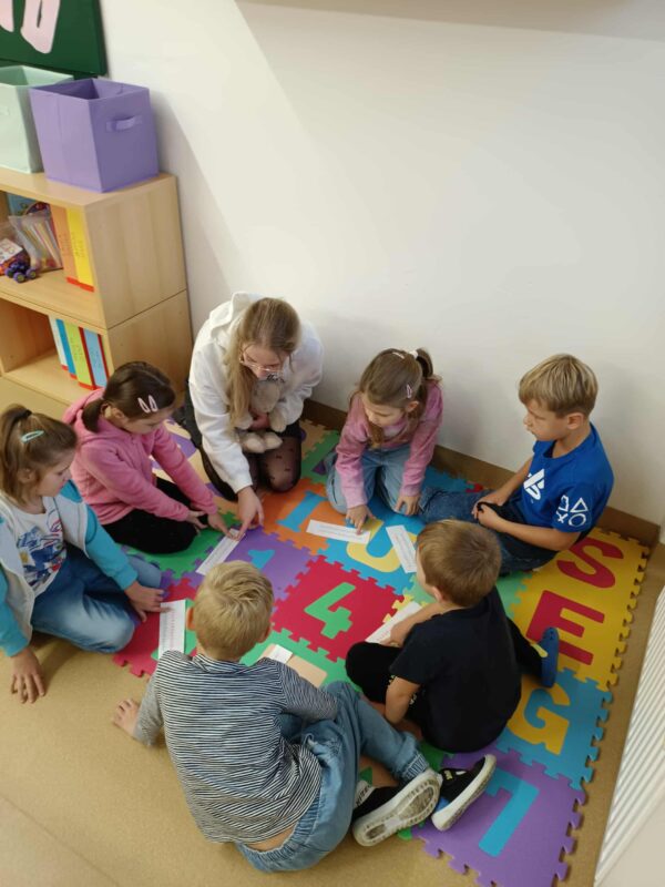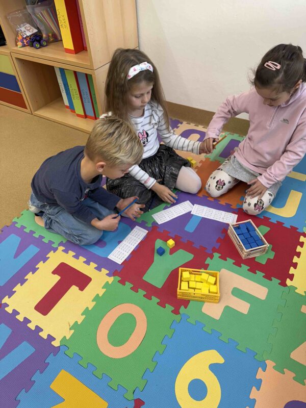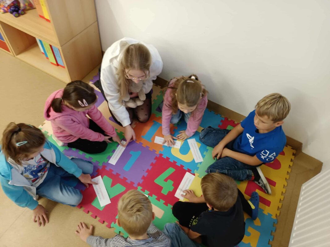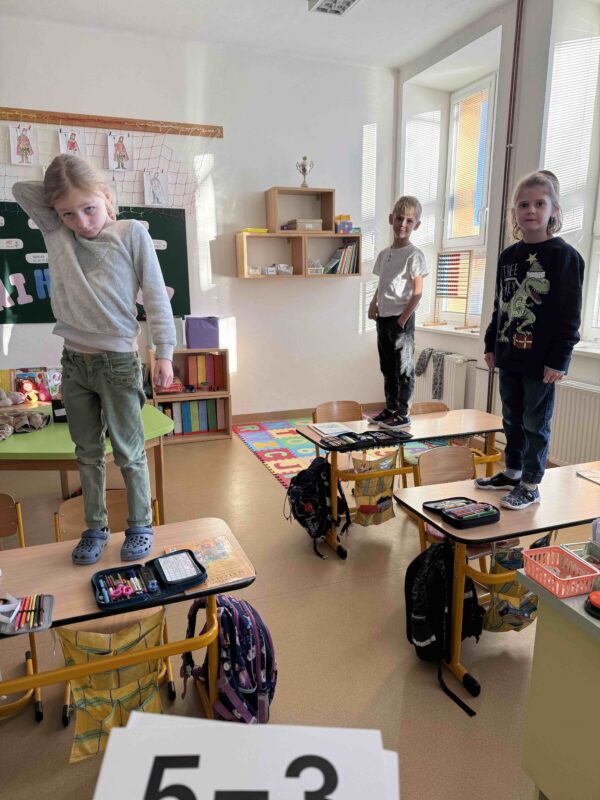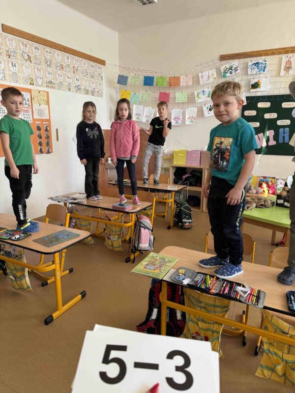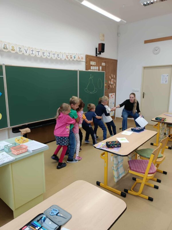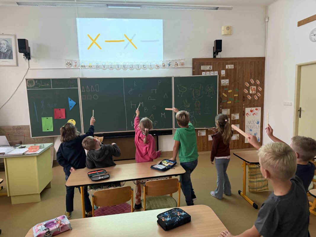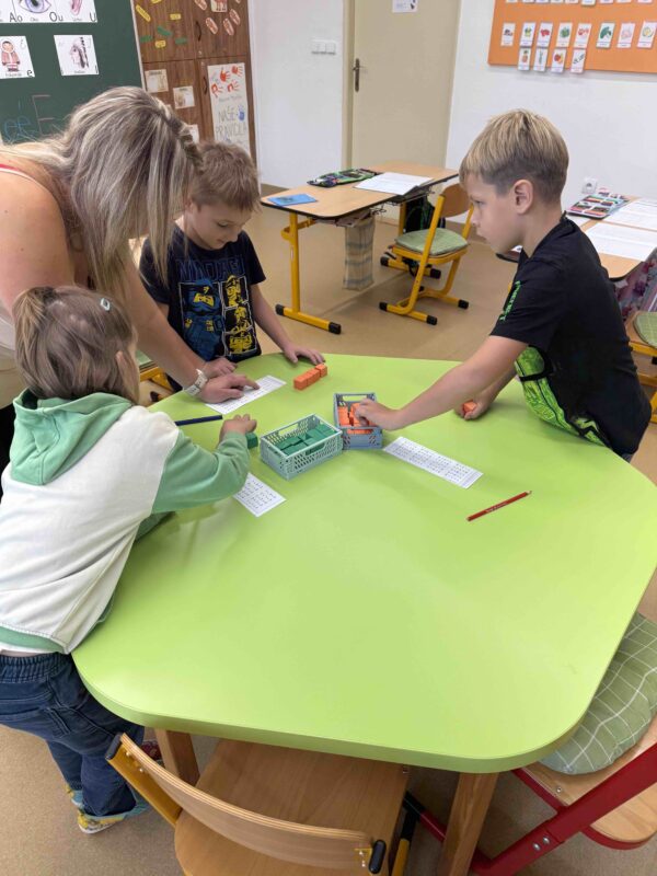 V českém jazyce jsme si vyzkoušeli čtení „jako had“ – každý žák četl jedno písmenko a společně jsme tak poskládali celý text. Děti se musely soustředit, pozorně naslouchat a zároveň je to moc bavilo. V matematice si naopak zahrály na „paní a pány učitele“. Ve skupinkách opravovaly příklady, přičemž si pomáhaly barevnými kostičkami, které skládaly a sčítaly. Díky tomu mohly snadno ověřit správnost výsledků. Skupinová práce děti motivovala, naučila je spolupracovat a přinesla jim radost z učení. (16.10.2025)