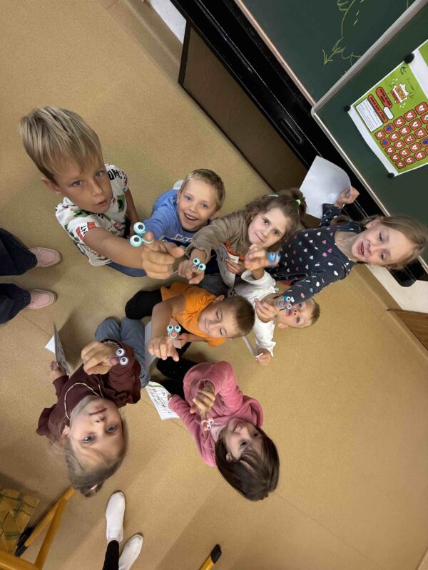 V naší třídě jsme si dnes čtení zpestřili netradiční pomůckou – na prsty jsme si připevnili očička, která nám pomohla lépe sledovat text a držet se na stejném řádku. Díky tomu se děti dokázaly více soustředit, postupovaly společně a čtení se pro ně stalo ještě zábavnější. Děti si nejdříve vyzkoušely čtení obrázků, kde si očíčka vedla prstem po řádku. (16.09.2025)