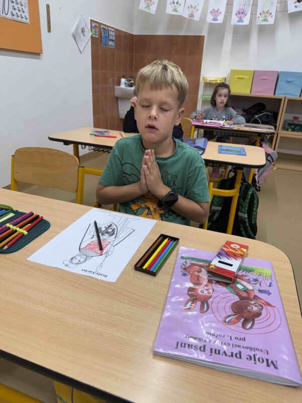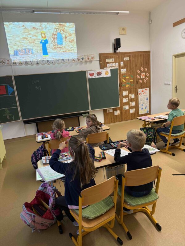 V hodině jsme si s prvňáčky povídali o významné osobnosti našich dějin – svatém Václavovi, patronovi české země. Děti se dozvěděly, kdo svatý Václav byl, proč si ho dodnes připomínáme a jaké hodnoty – jako pomoc druhým, laskavost a odvaha – byly pro něj důležité. Abychom si výuku zpestřili a lépe porozuměli jeho příběhu, podívali jsme se také na krátký video „Český lev – příběh o svatém Václavovi“, který dětem poutavou formou přiblížil jeho život. Na závěr jsme si svatého Václava vymalovali, a tak nám nyní jeho obrázky krásně zdobí třídu. (29.09.2025)