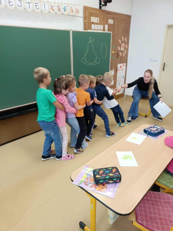 V naší třídě jsme si dnes vyzkoušeli dramatizaci známé pohádky O veliké řepě. Tentokrát jsme se ale rozhodli udělat malou změnu. Veliká řepa byla poněkud netradiční – zahrála jsem si ji já, paní učitelka – a místo dědečka, babičky, vnučky a zvířátek se do tahání pustily přímo děti. Každý si vyzkoušel, jaké to je, když se do společného úkolu musí zapojit všichni, protože jen tak se podaří velikou řepu vytáhnout. Byla to nejen velká legrace, ale také krásná ukázka toho, jak je spolupráce a týmová práce důležitá. Děti si hru moc užily a už teď se těšíme na další dramatizaci, která nám přinese zábavu i poučení. (15.09.2025)
