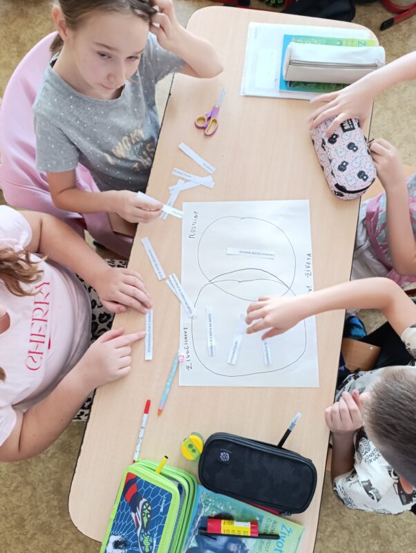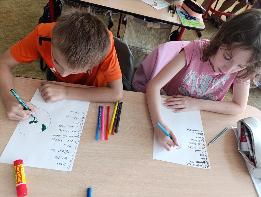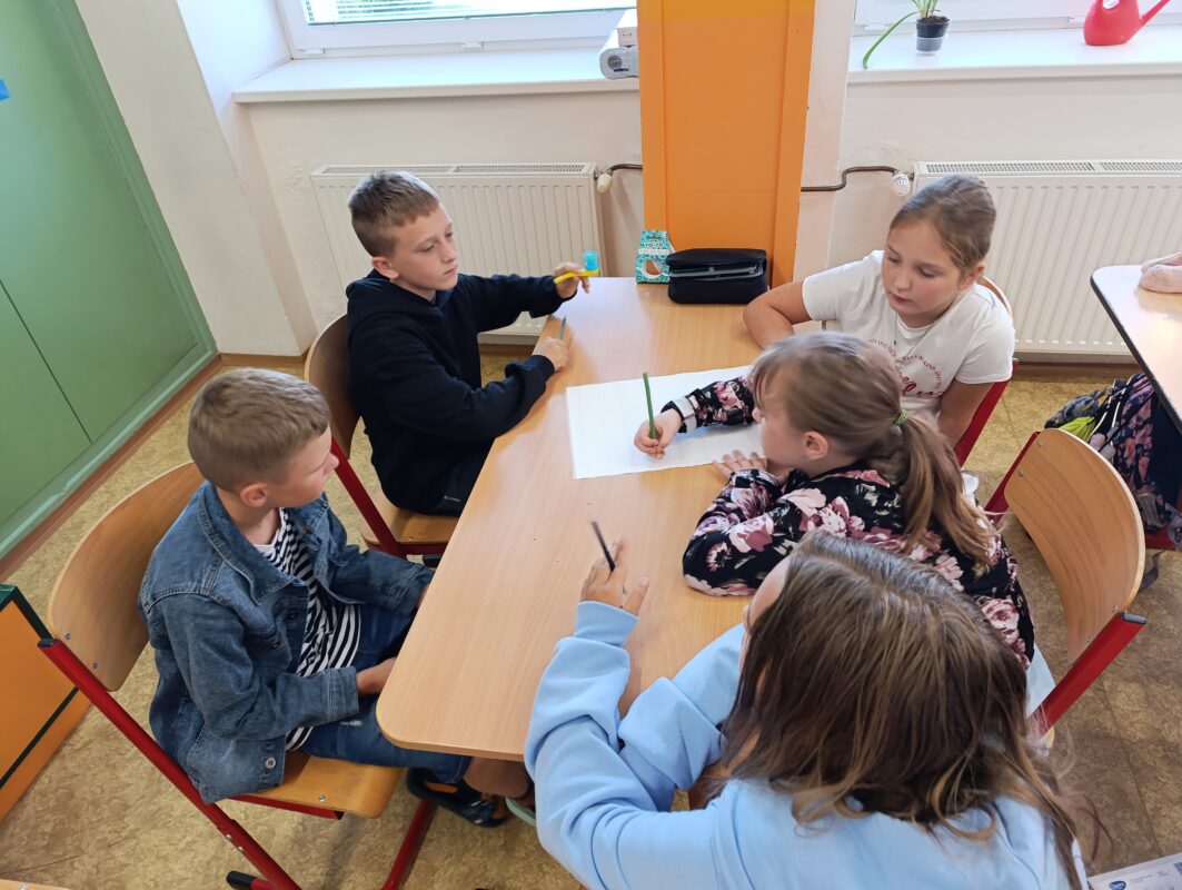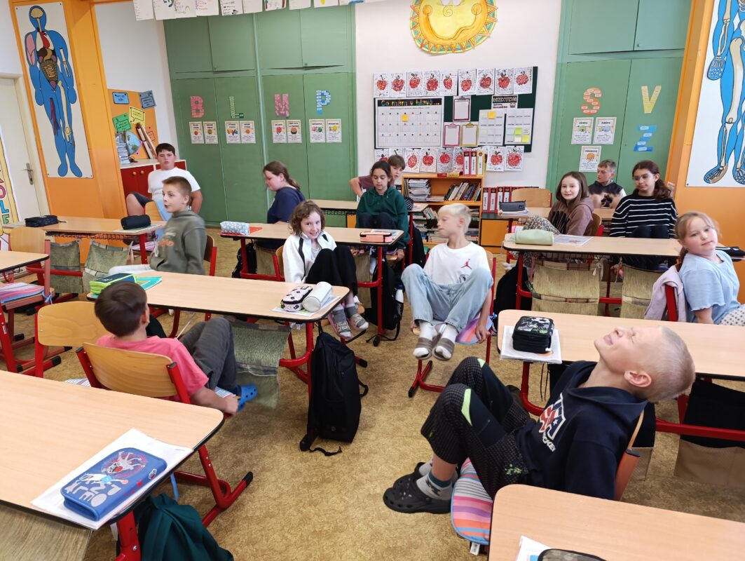 Tak už nám to začalo, učeníčko-mučeníčko. Paní učitelka se snaží z našich hlaviček vydolovat to, co tam zbylo. A zkouší to různými způsoby. Vyzkoušeli jsme si alfabox – ke každému písmenku abecedy jsme psali slovo, které se týkalo našich prázdnin. Tak jsme se rychle dověděli, co kdo o prázninách dělal. Pak si nás paní učitelka otestovala v tom, jak dobře ji známe. Nedopadli jsme úplně špatně, za ty dva roky už o ní něco víme. V češtině jsme si pomocí kostky vylosovali téma a druhému ve dvojici pověděli, co o tom víme. Různě jsme se střídali a svoje odpovědi jsme si vzájemně kontrolovali. V matematice jsme si trošku malovali zlomky a v přírodovědě jsme vymýšleli slova, která se vztahují k přírodě a o kterých už jsme nekdy něco slyšeli.