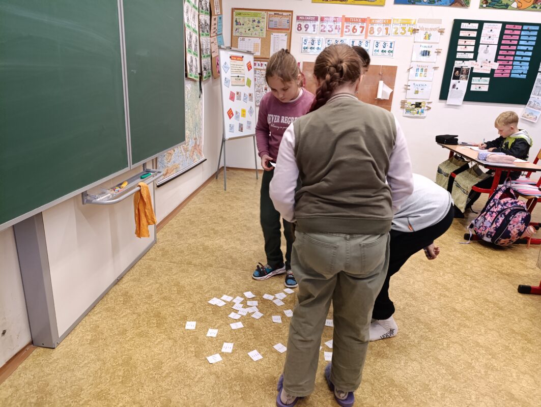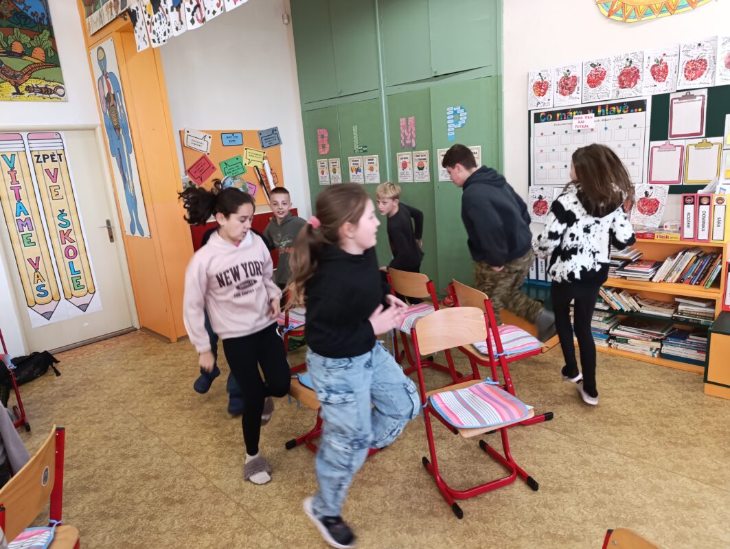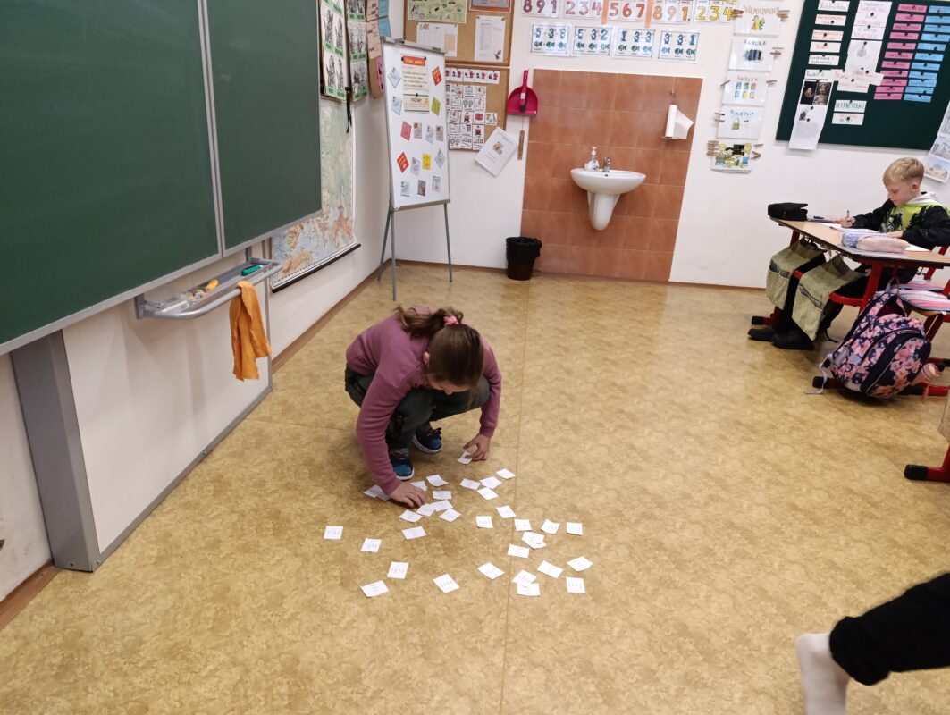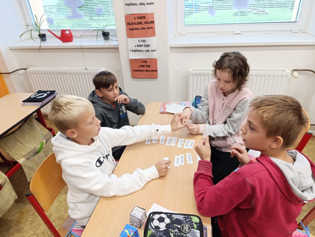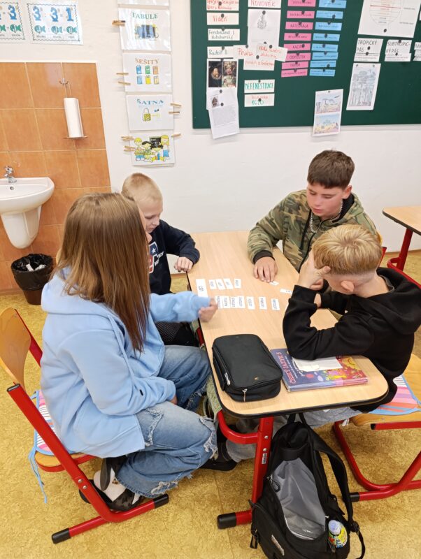 I v češtině se dají hrát hry, kterými se učíme. Tak například jsme ubytovávali slova s ě nebo je do správných pokojíčků do domečku. A nebo jsem si zahráli židličkovou, při které měli ti, co vypadli, spoustu práce s vyznačováním kořenů slov.