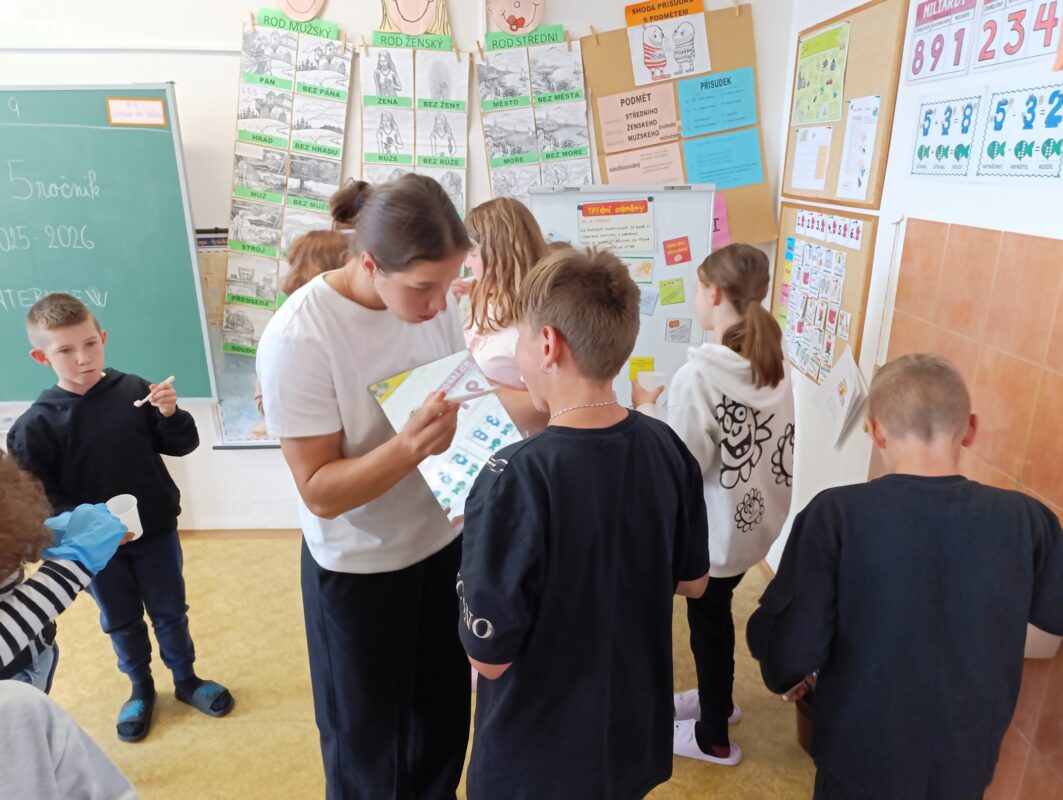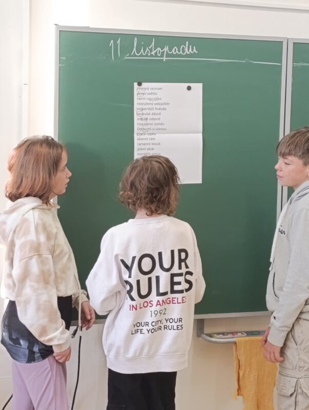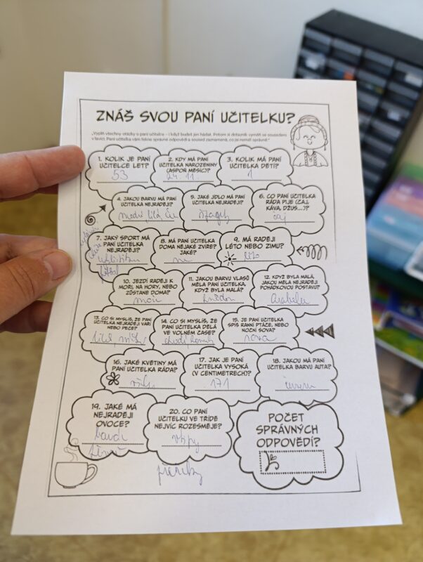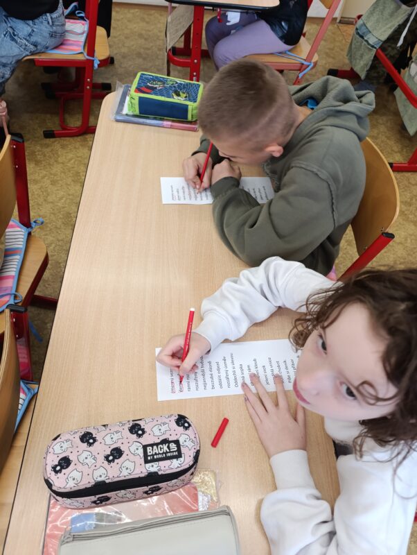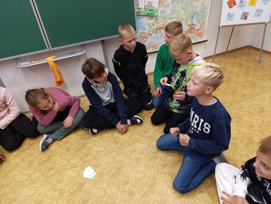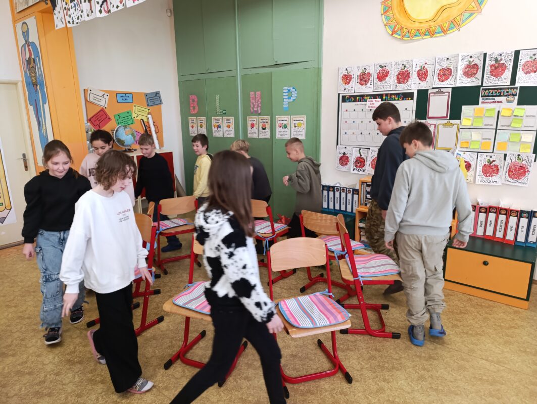 I v češtině se dají hrát hry, kterými se učíme. Tak například jsme ubytovávali slova s ě nebo je do správných pokojíčků do domečku. A nebo jsem si zahráli židličkovou, při které měli ti, co vypadli, spoustu práce s vyznačováním kořenů slov.