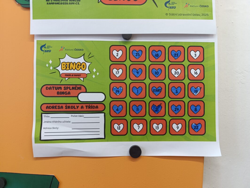 Celých 14 dní jsme o volných chvilkách plnili úkoly Pohybového binga. Každý den jsme si vylosovali 2 kartičky, splnili jsme cvičení a vybarvili si 2 políčka v bingu. Nakonce se nám podařilo získat 4 binga a po odeslání budeme čekat, jestli náhodou nevyhrajeme nějakou cenu.