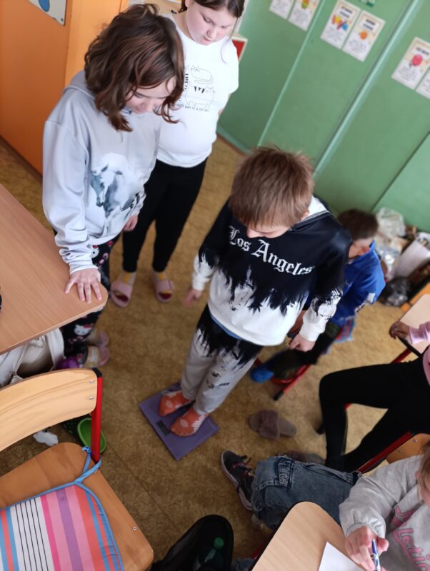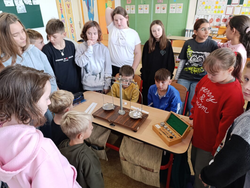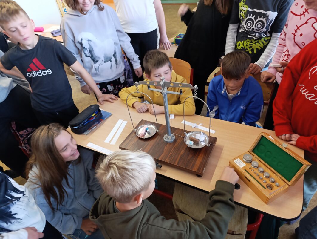 S jednotkami hmotnosti jsme setkali už mnohokrát, ale poprvé jsme viděli laboratorní váhy, na kterých jsme se pokoušeli vážit malé předměty za pomocí závaží. No zjistili jsme, že je to velmi náročné. Mnohem jednodušší bylo vážení ve skupinkách. Úkolem bylo zvážit všechny členy skupiny, sečíst jejich hmotnost a porovnat s ostatními skupinami. Pak jsme se rozdělili do dvojic, opět jsme se zvážili, a pak jsme hledali jinou dvojici, která byla váhově blízká.