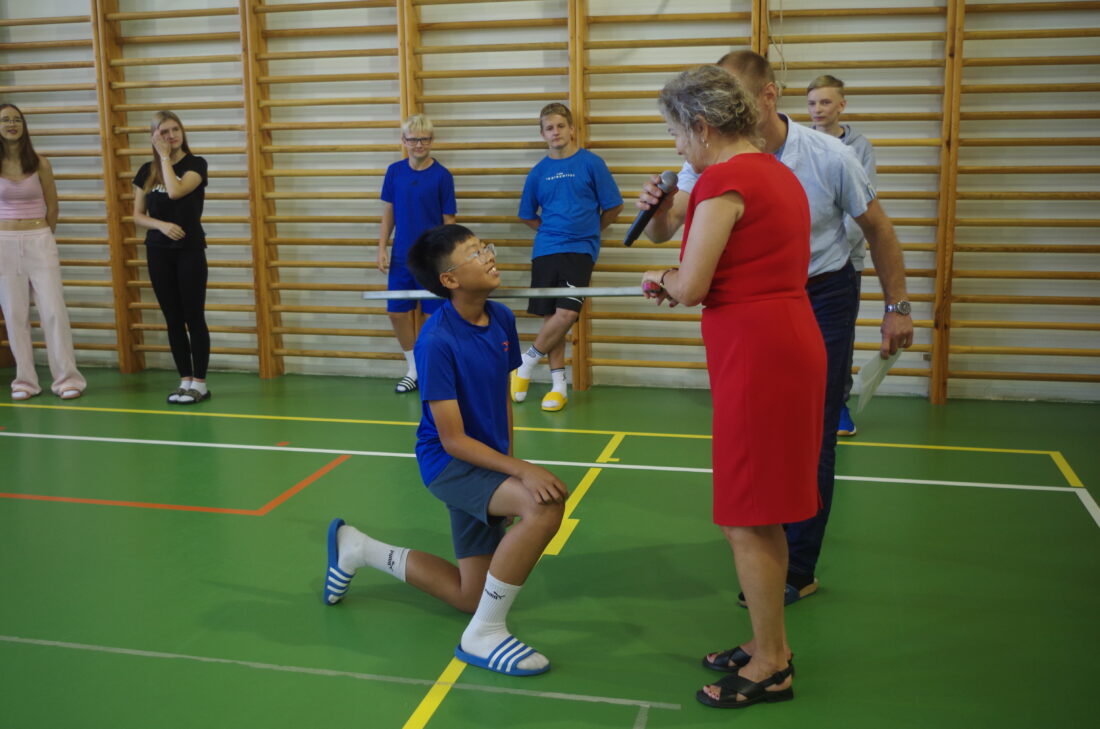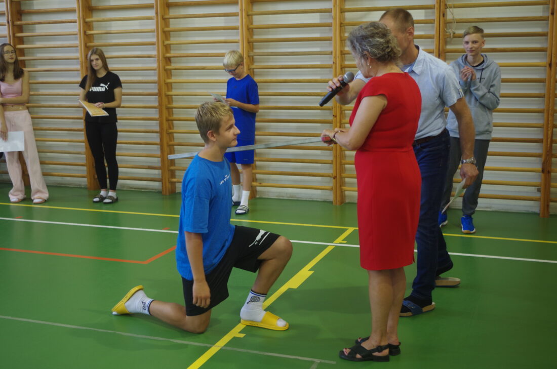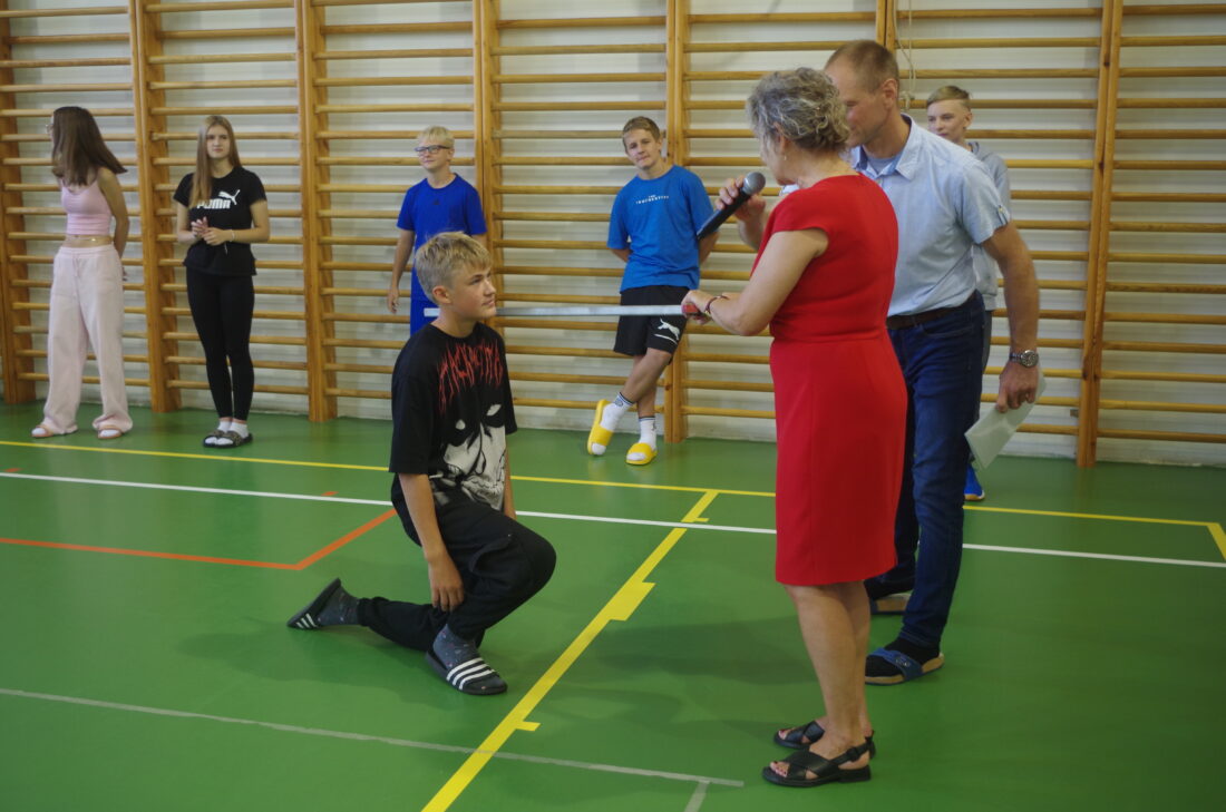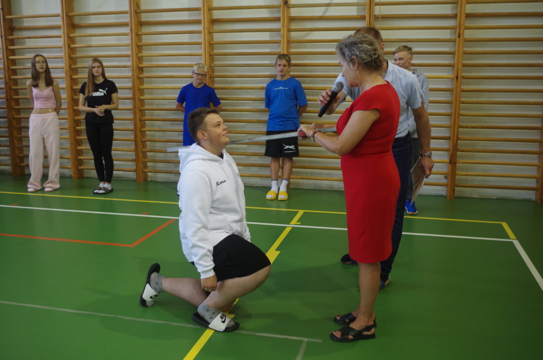 Poté přišel slavnostní okamžik – paní ředitelka pasovala každého deváťáka rytířským mečem. Ačkoli se meč blýskal a působil velice důstojně, naštěstí nikomu neublížil. Maximálně se třem žákům rozklepala kolena – prý z nervozity, ale možná to bylo spíš tím, že v tu chvíli konečně pochopili, že devítka je tu opravdu poslední zastávkou před „velkým světem“.