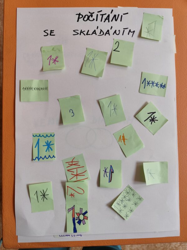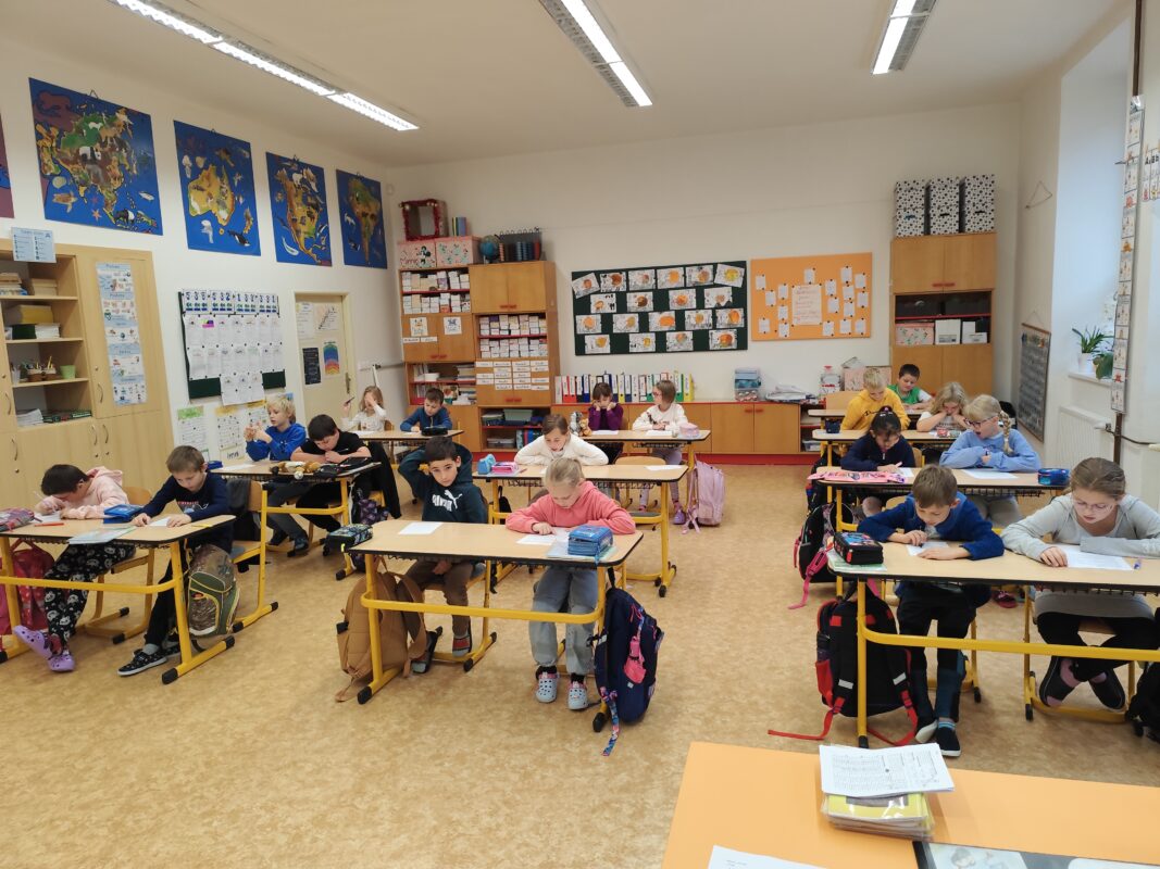 Další část prvního celku byla směřována na matematiku – zopakování právě probíraného učiva pamětného odčítání do 100 s přechodem přes desítku. Každý žák obdržel sloupeček s příklady. Při počítání museli dodržovat daný postup: