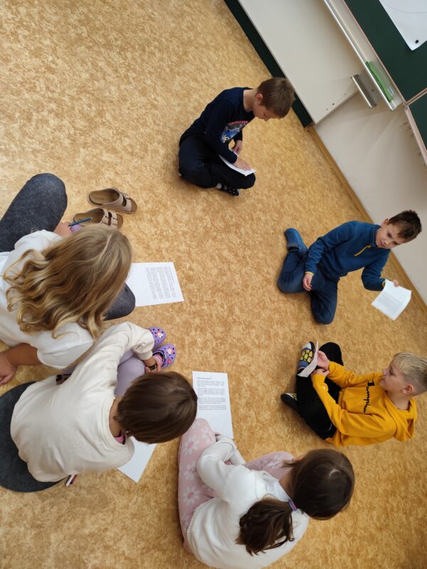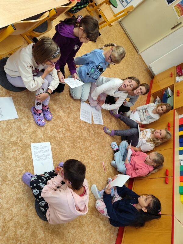 Třeťáci si vyzkoušeli výuku trochu jinak. Nacházeli důležité hodnoty prostřednictvím krátkých textů o Anetce a Sebastiánovi. Zprvu četl každý sám polohlasně přidělený text. Poté utvořili 2 skupiny – chlapci a dívky, kde si společně povídali o tom, co četli. Nakonec utvořili 3 skupinky, které již byly smíšené, a v tuto chvíli vyšlo najevo, že chlapci hovoří o jiném textu než dívky. Sdílení informací probíhalo v tichosti s obvyklým poznatkem: chlapci si příběh vyprávěli tak, jak je to napadlo. Děvčata „ztrácela čas“ organizací, kdo bude mluvit, kdy bude mluvit, v jakém pořadí, na čemž se nedokázaly domluvit, proto musela do jejich „organizace“ vstoupit paní učitelka. U smíšených družstev k této kolizi již nedošlo.