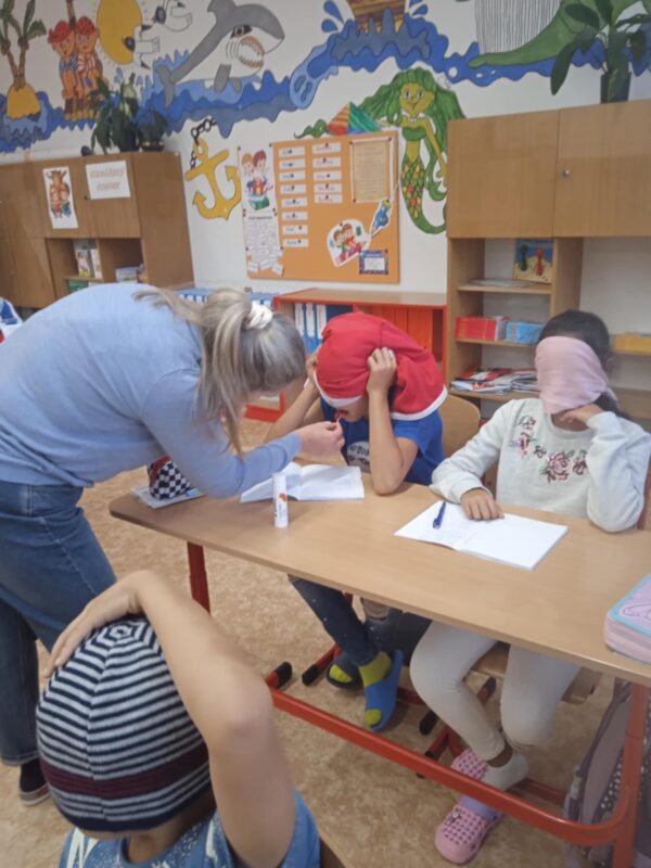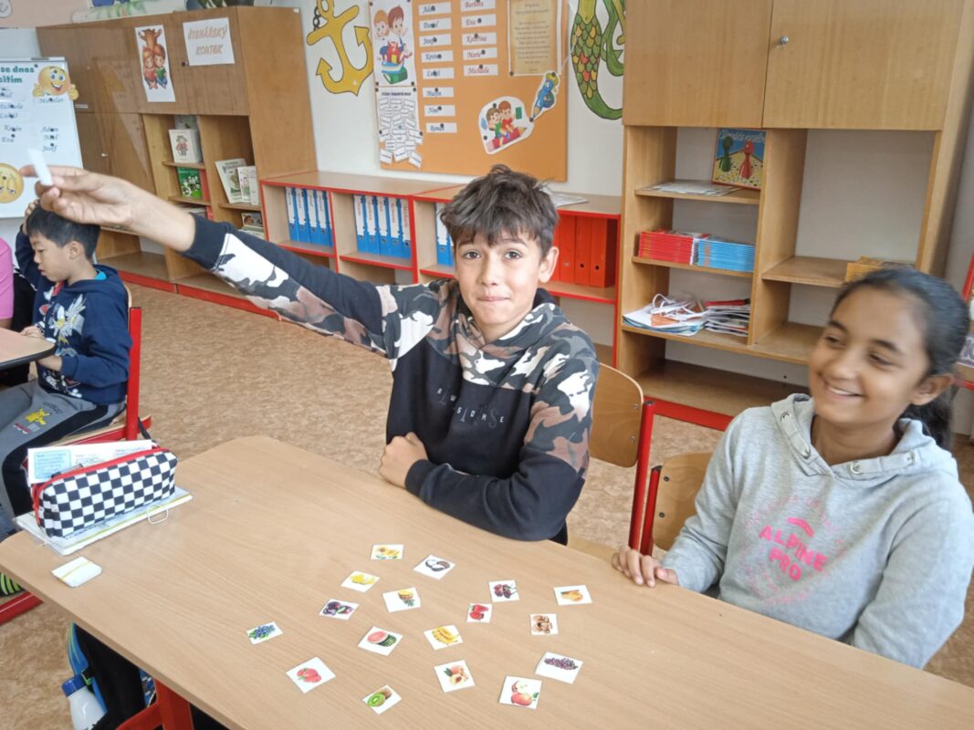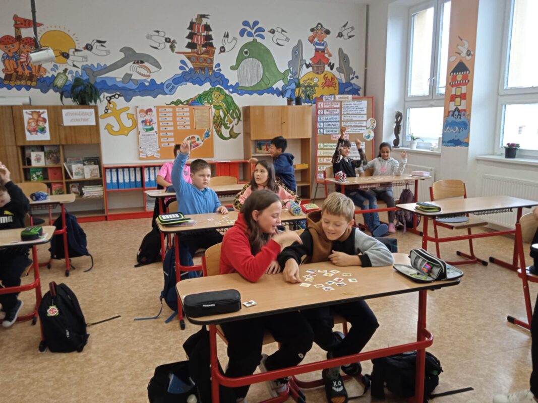 Abychom si výuku zpestřili, zařadili jsme do hodin několik oblíbených her. Děti si zahrály například plácanou, kde musely co nejrychleji najít a plácnout obrázek správného ovoce či zeleniny podle anglického názvu. Velký úspěch měla také židličkovaná, při které se pod každou židlí skrýval obrázek – úkolem bylo ho pojmenovat v angličtině, než se hudba znovu rozběhne.