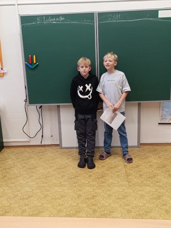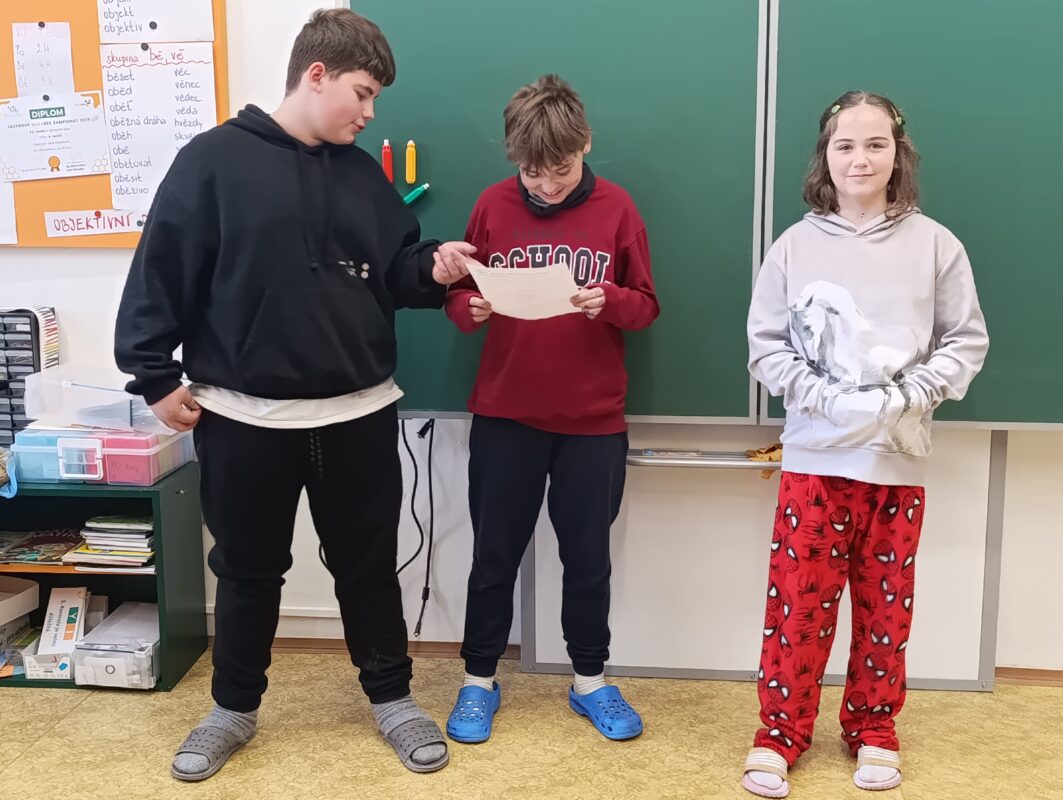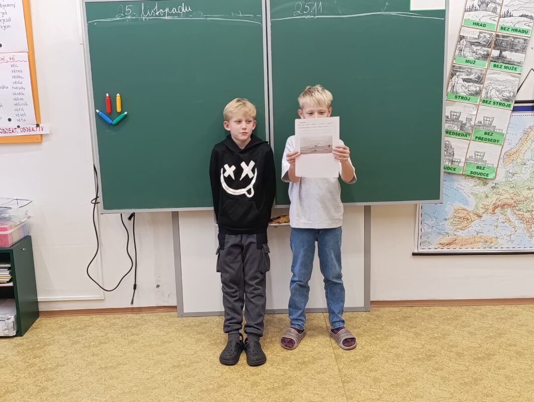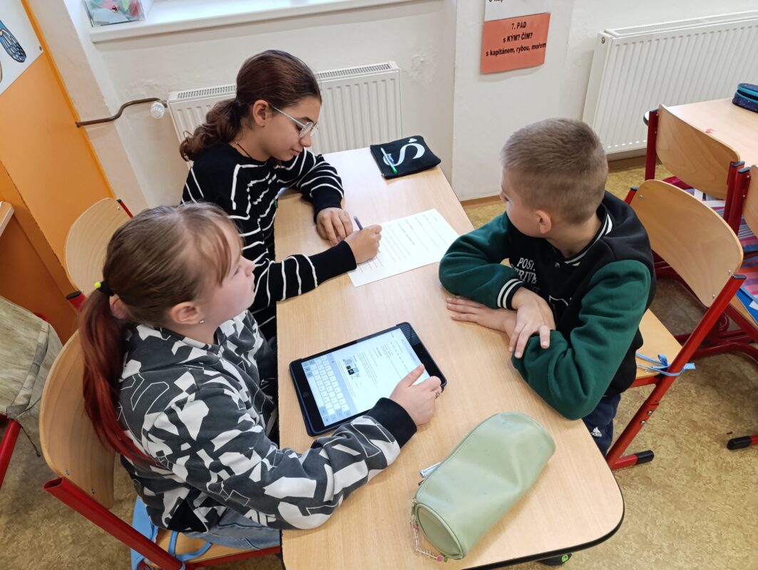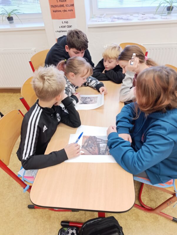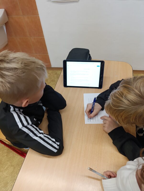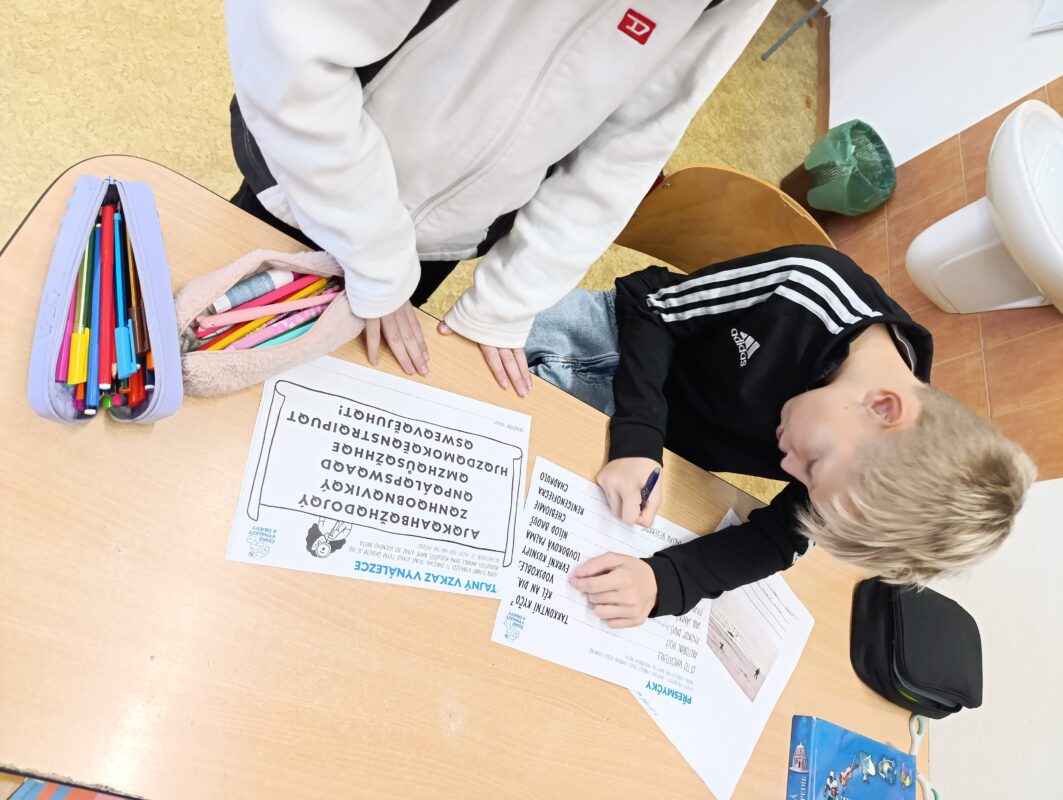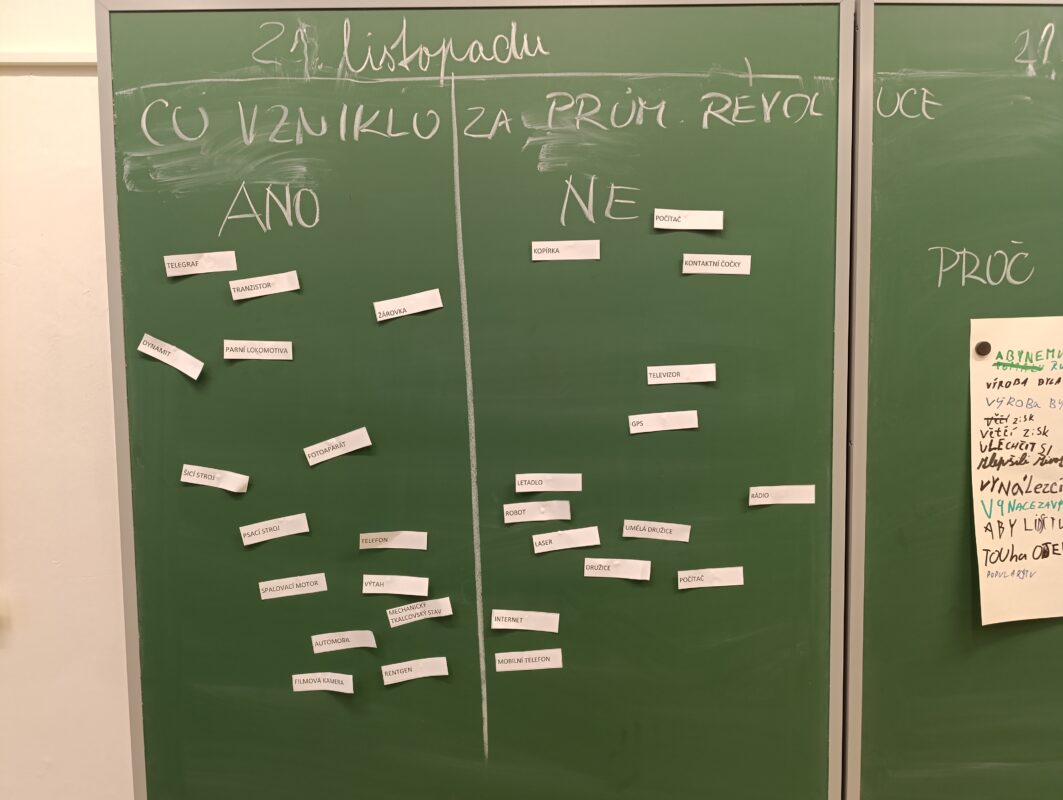 O vynálezy jsme se v 5. třídě zajímali díky tomu, že právě ve vlastivědě probíráme průmyslovou revoluci. A proto jsme se do problematiky ponořili trošku více. Uvažovali jsme , proč se vlastně vynalézalo, jak vynálezy prospěly lidem, třídili jsme vynálezy podle století jejich vzniku, nebo jsme se hlouběji zkoumali oinformace o parním stroji, tkalcovském stavu nebo koněspřežné železnici. Hlavní částí projektu bylo ve trojicích zpracovat informace o jednom vybraném vynálezu, kterých jsme na tabuli před tím vypsali opravdu mnoho. Informace jsme čerpali z knih, encyklopedií, vyhledávali jsme je na internetu i za použití AI. Koneečné výtvory jsme pak odprezentovali ostatním skupinám. Ve volných chvílích jsme pak luštili názvy vynálezů českých vynálezců, nebo jsme si lámali hlavičky na zašifrovaným vzkazem jednoho z nich. Ten byl opravdu zajímavý: