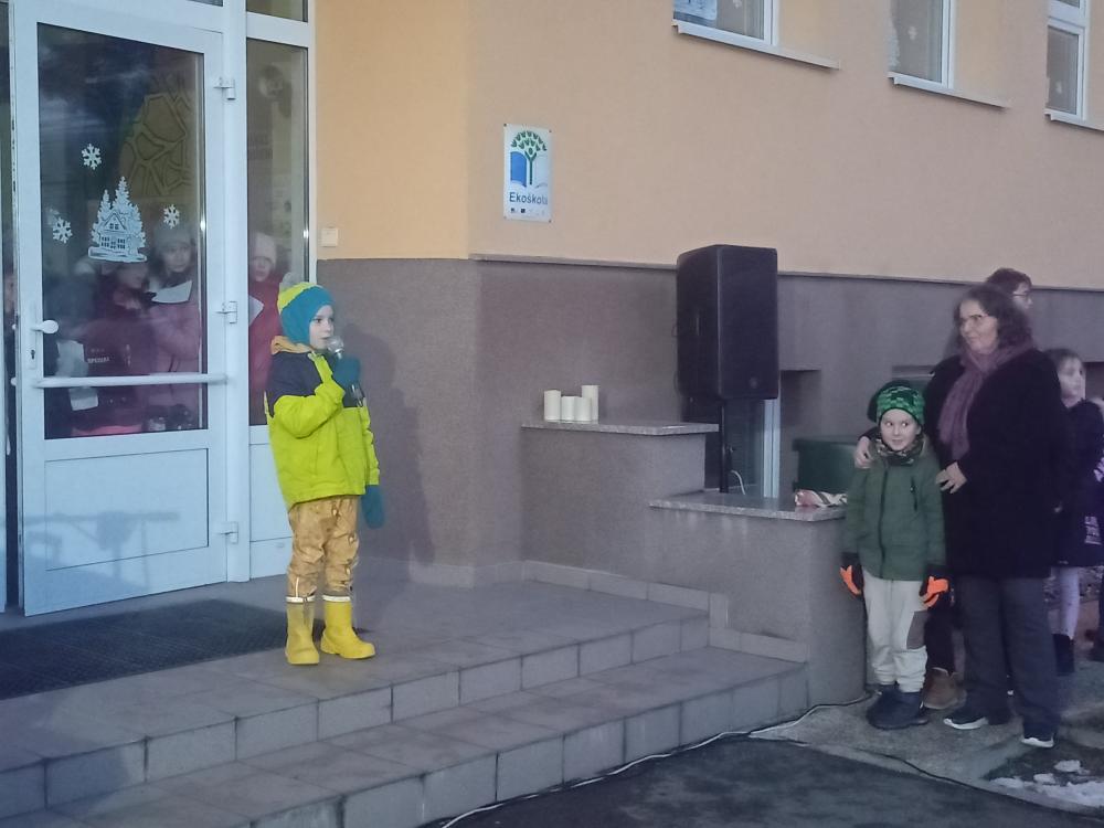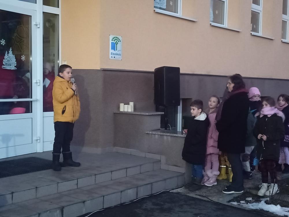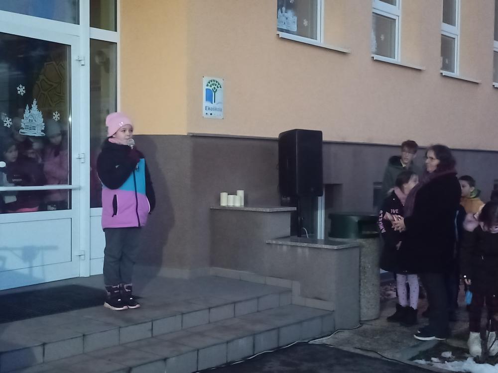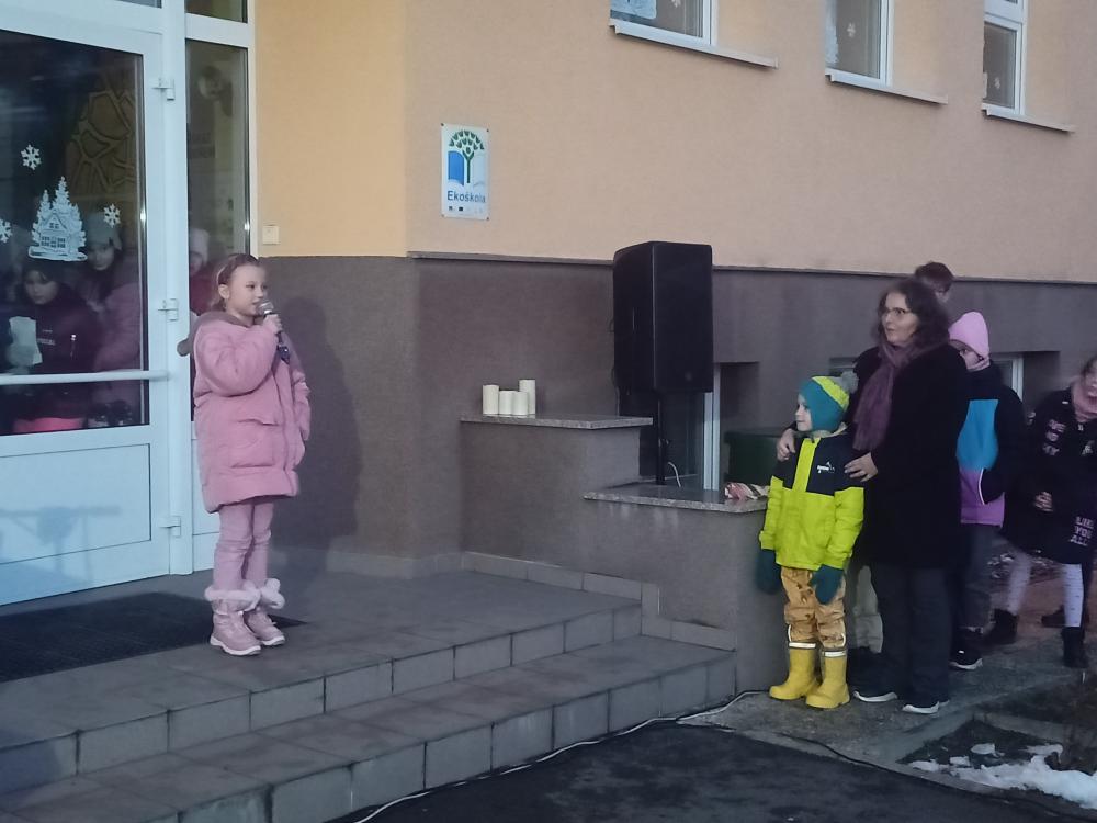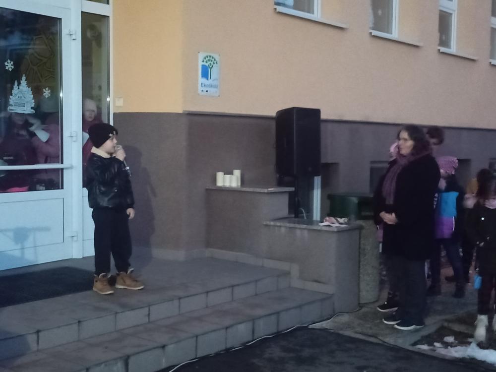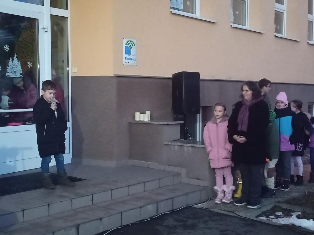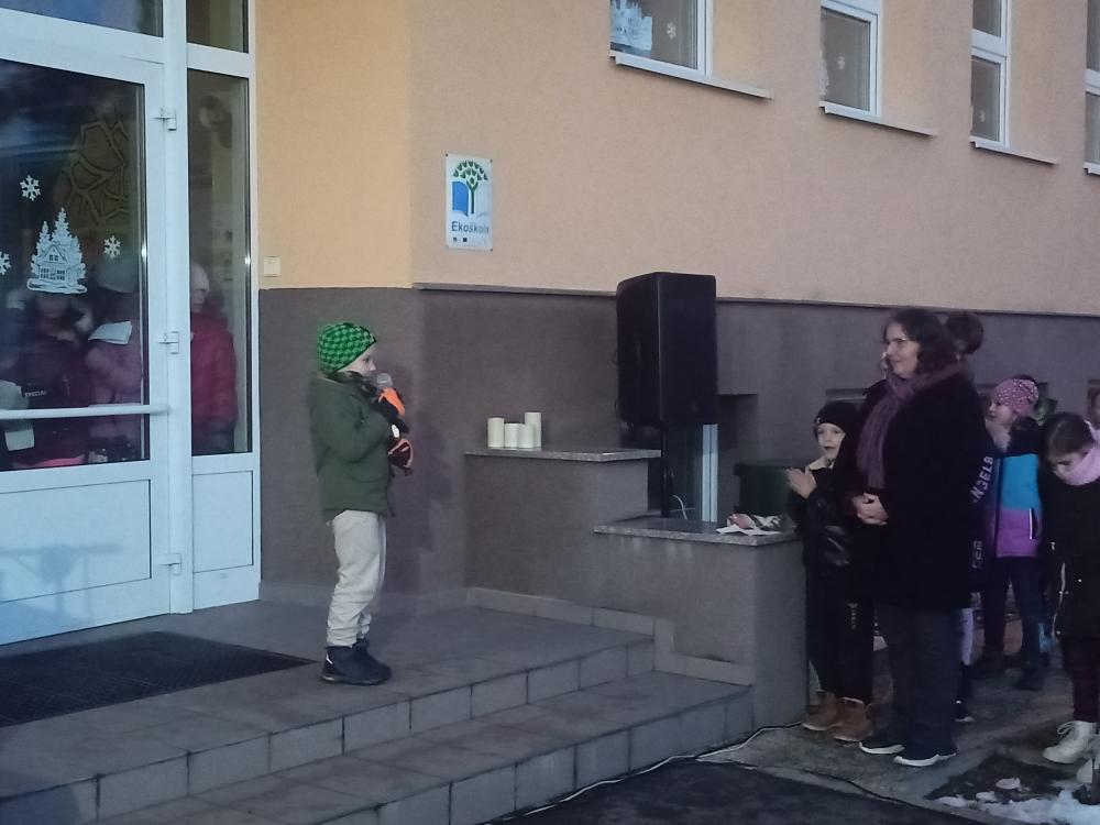 Úvodní slovo patřilo naší paní ředitelce. Představení měly připraveny jak nejmenší děti z mateřské školky, tak i ti nejstarší – deváťáci. I přes skutečně zimní počasí zvládli naši žáci vše na jedničku a zaslouží si pochvalu za malou divadelní scénku o čtyřech svících a připomenutí svátečních dnů, které nás v tomto období provázejí. Například již uplynulý víkendový svátek sv. Ondřeje, či blížící se sv. Barbora, sv. Mikuláš, sv. Lucie a další. Novinkou bylo vystoupení dětí ze školní družiny, které si pro nás připravily malý recitál v podobě zimních říkanek a básniček.