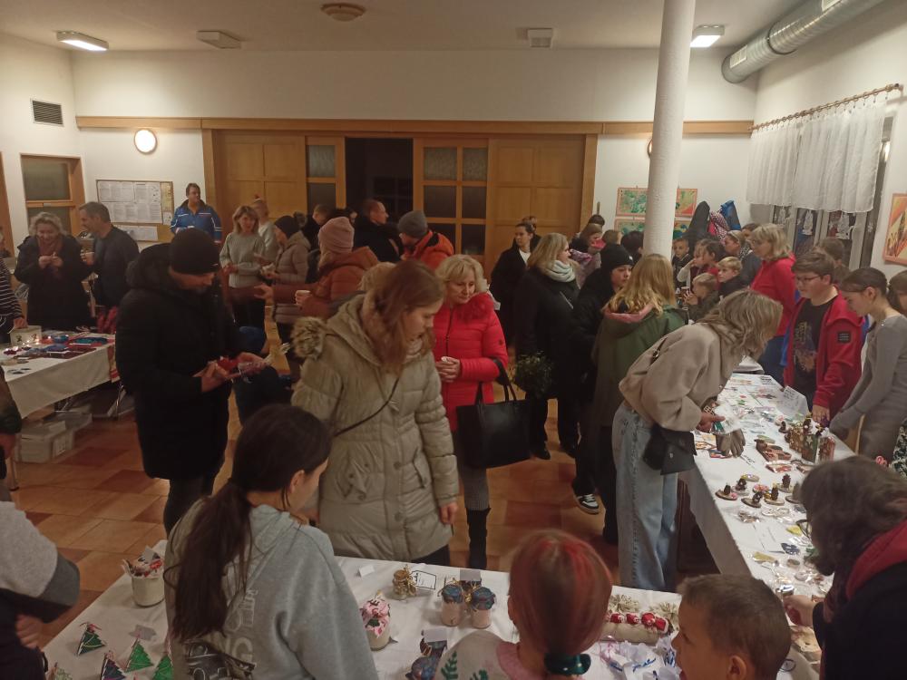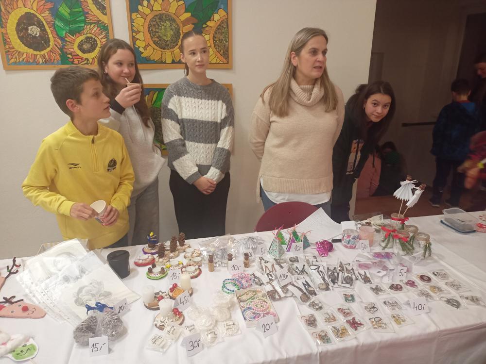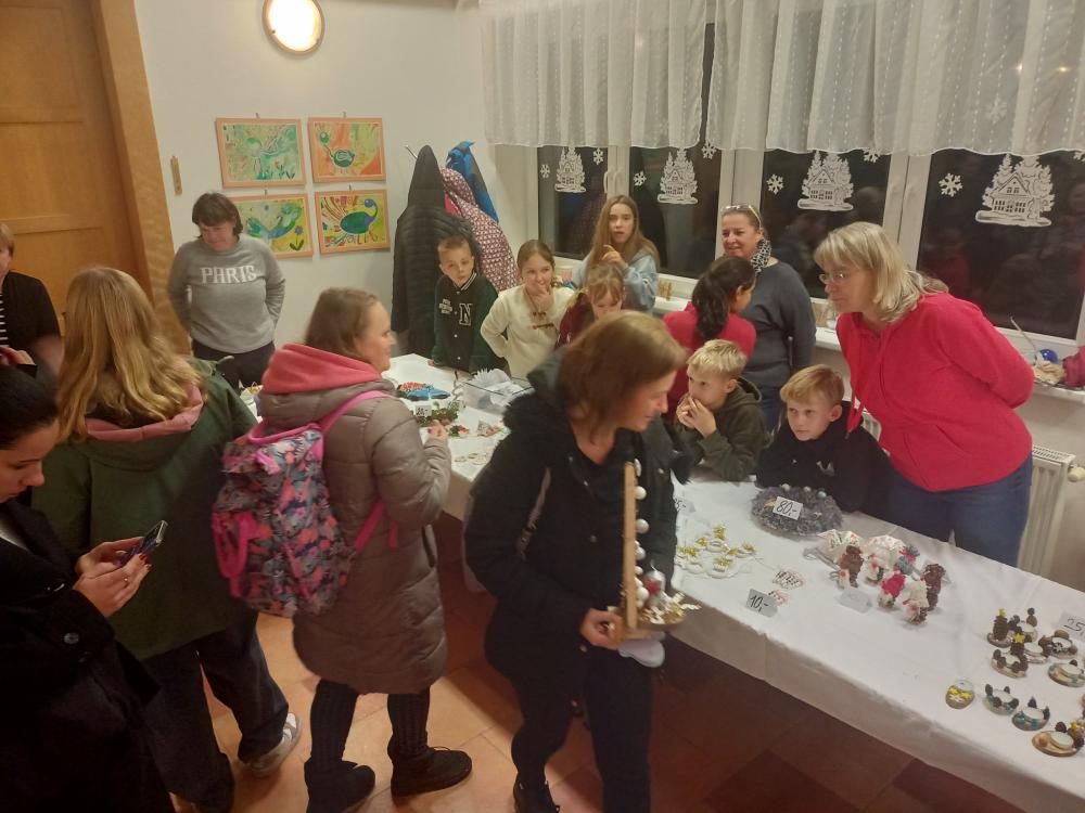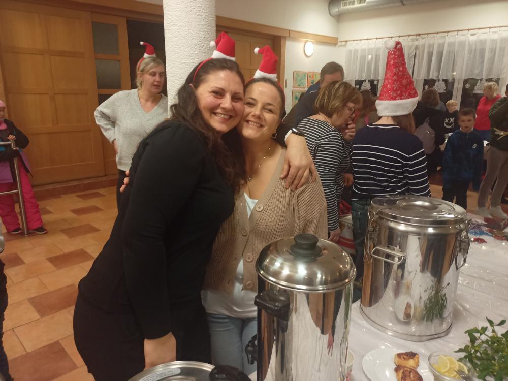 Ohřát jsme se mohli v prostorách jídelny, kde bylo pro všechny zúčastněné přichystáno drobné občerstvení v podobě úžasného svařáku a teplého čaje. Před jídelnou jsme měli možnost zakoupit vyhlášené klobásy pana učitele Mirka Zámarského. Samozřejmě nesměl chybět vánoční jarmark výrobků a jmelí. Letos bylo skutečně z čeho vybírat! Všem, kteří se na tvorbě drobností k prodeji podíleli, patří velký obdiv za jejich zručnost a trpělivost. A to především našim žákům a žačkám, v jejichž režii se letošní jarmark odehrál především.
