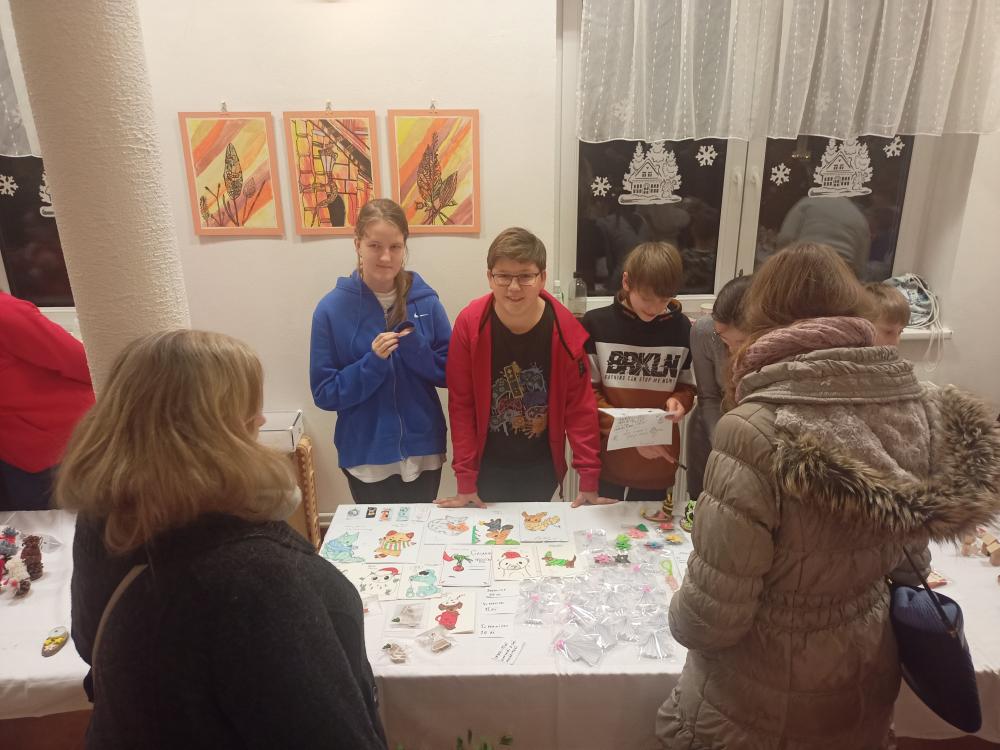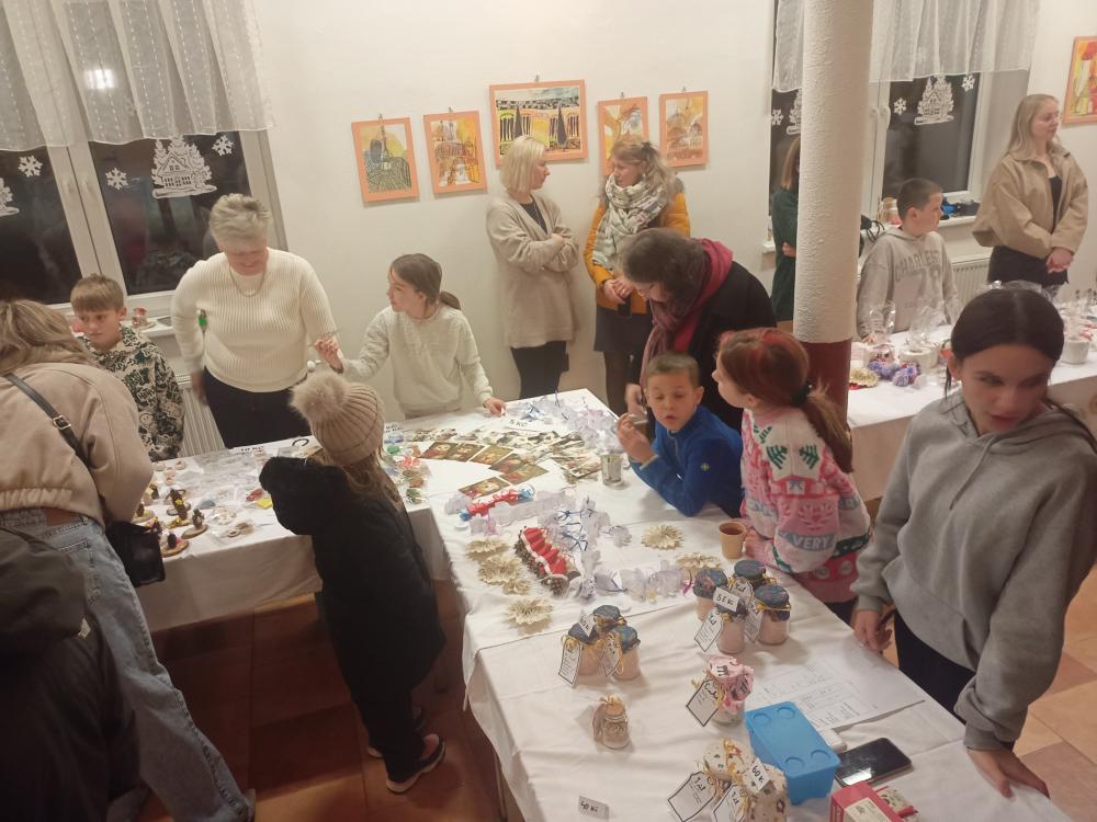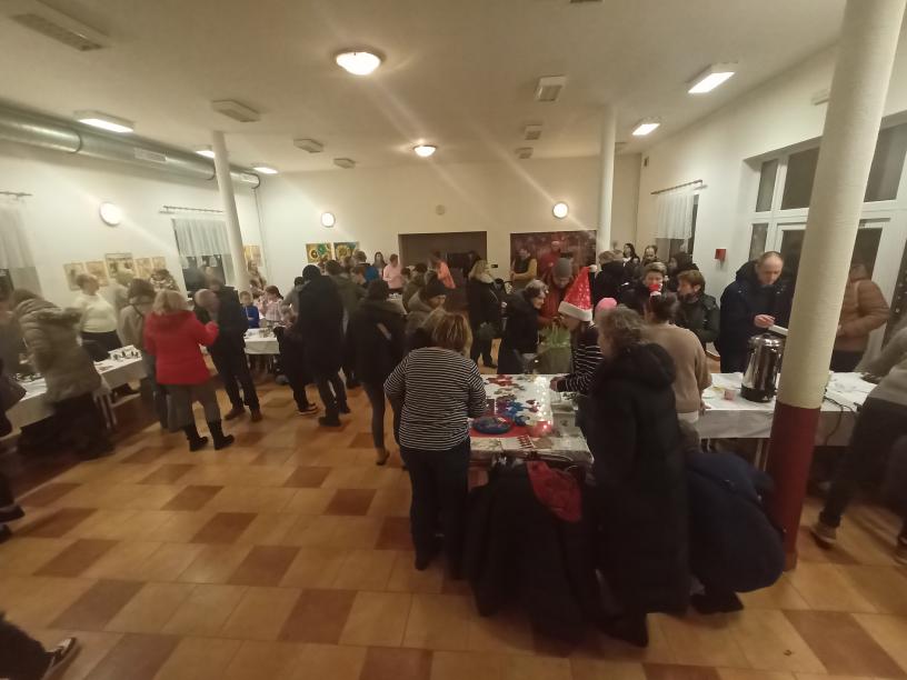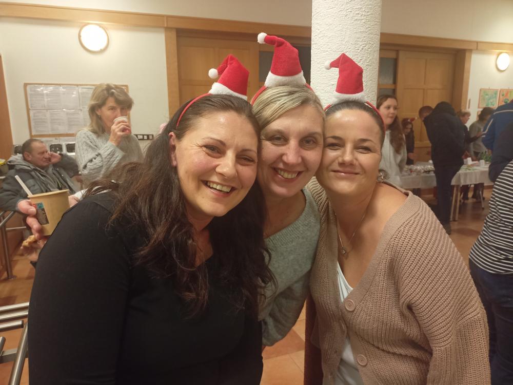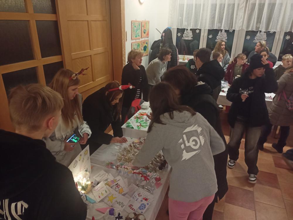 Ohřát jsme se mohli v prostorách jídelny, kde bylo pro všechny zúčastněné přichystáno drobné občerstvení v podobě úžasného svařáku a teplého čaje. Před jídelnou jsme měli možnost zakoupit vyhlášené klobásy pana učitele Mirka Zámarského. Samozřejmě nesměl chybět vánoční jarmark výrobků a jmelí. Letos bylo skutečně z čeho vybírat! Všem, kteří se na tvorbě drobností k prodeji podíleli, patří velký obdiv za jejich zručnost a trpělivost. A to především našim žákům a žačkám, v jejichž režii se letošní jarmark odehrál především.