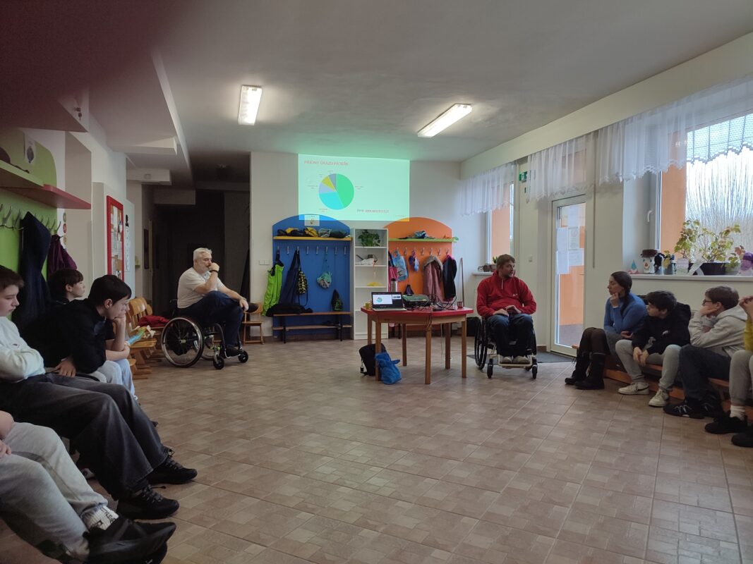 Na druhý stupeň naší školy přijeli ambasadoři preventivního projektu VZPoura úrazům podporovaného VZP ČR – Pavel Brož a Radomír Krupa. Žákům 2. stupně přiblížili, jak rychle se může člověku změnit život kvůli jednomu neuváženému rozhodnutí, a jak důležitá je opatrnost při sportu, v dopravě i při běžných „klukovinách“.