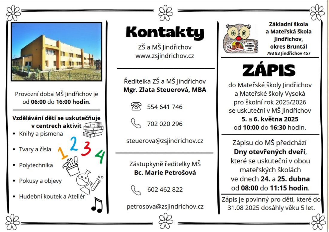 Bulletin ZŠ a MŠ Základní škola a Mateřská škola Jindřichov, okres Bruntál > Škola > Bulletin ZŠ a MŠ Mgr. Martin Mišan 14.2.2025 Škola Níže si můžete prohlédnout, případně stáhnout naše aktuální bulletiny. Jsou totiž „jako obrázek“ (doslova). . . . ← Předchozí příspěvek Další příspěvek →