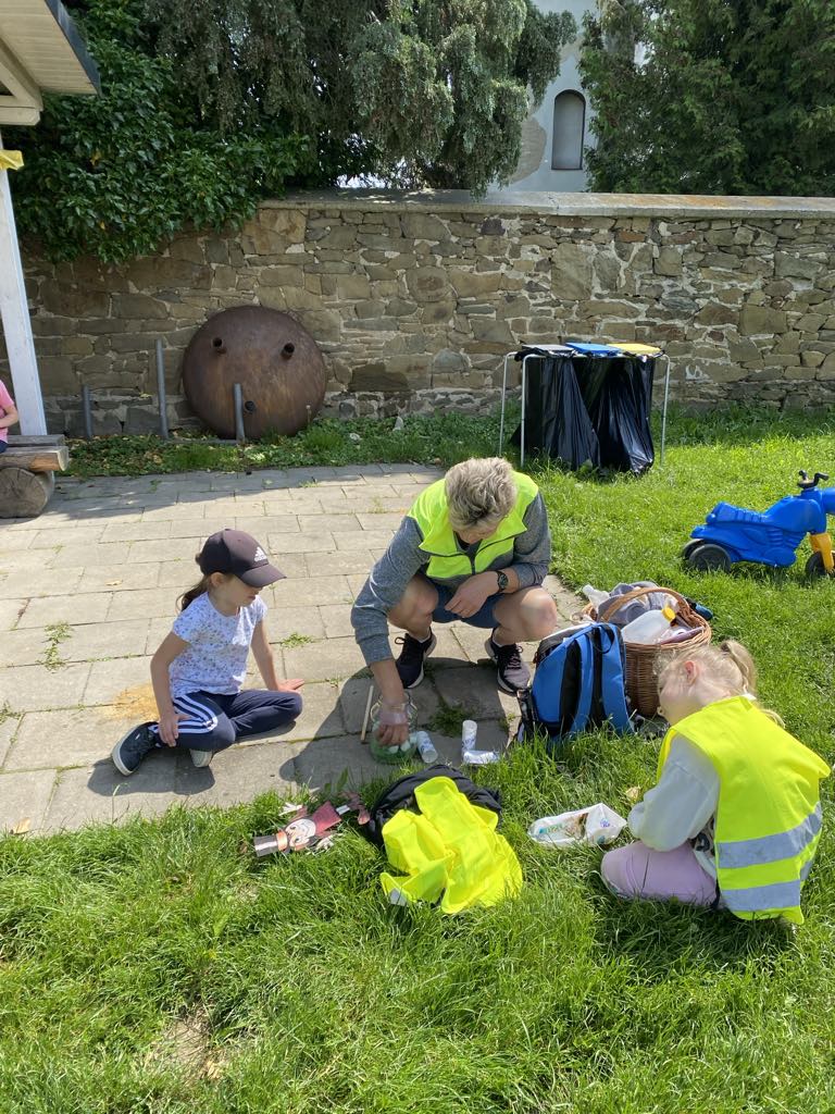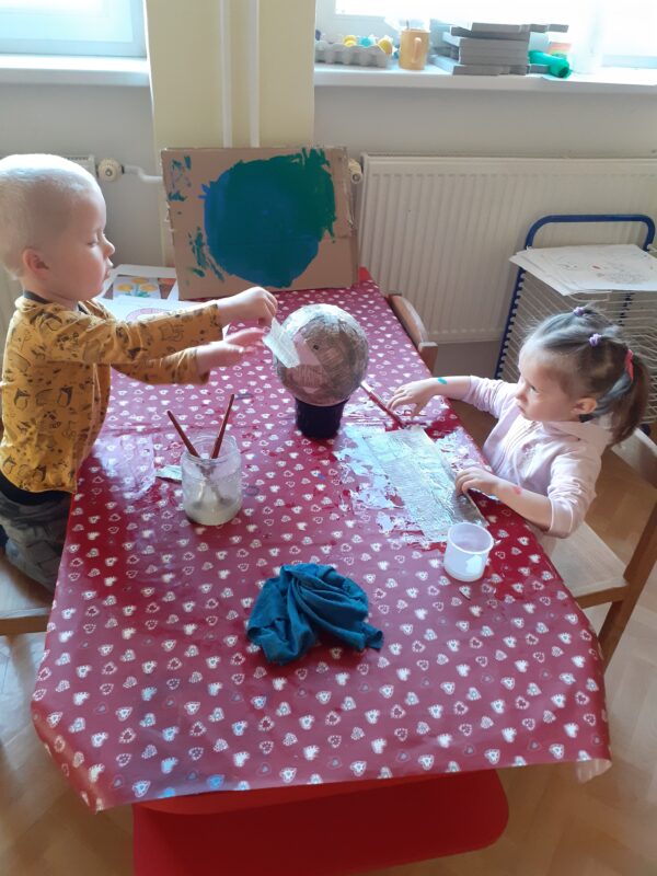 V tematickém celku „Poznáváme ekosystémy – louku, les a rybník“ jsme se také seznamovaly s místem, kde žijeme, s planetou Zemí, s pojmem sluneční soustava. Děti tvořily naši Zemi z vršků od PET lahví, dělaly pokus s mlékem a jarem, zapouštěly barvičky. Povídali jsme si o tom, jak můžeme naší planetě sami pomoci. Odpoledne jsme připravili pro rodiče s dětmi akci na školní zahradě s úkoly a opékáním. Obrovské poděkování patří paní Moničce s dětmi, která se jako jediná zúčastnila. O týden později jsme připomínali získané poznatky také při projektovém Dni Slunce.