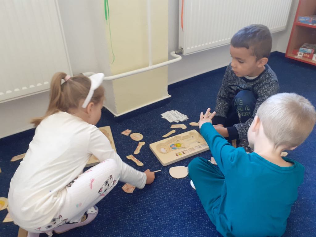 První únorové dny jsme se ve školce zaměřili na téma lidského těla, orgánů, zdraví, hygieny ale také nemocí, a ochrany našeho zdraví. Při aktivitách jsme si procvičili naše smysly, při cvičení pořádně protáhli tělíčka a nechyběla ani zdravá svačinka, kterou jsme si vyrobili. Mohli jsme si osahat a prohlédnout makety lidského těla a vyzkoušet pokus se solí , či tajným písmem za pomoci citronové vody. Těchto 14 dnů pro nás všechny bylo opravdu zajímavých, dozvěděli jsme se spousty nových informací a naučili se, jak je důležité se o své tělo a zdraví starat, a jak je potřeba se pořádně v postýlce uzdravit.