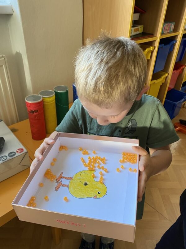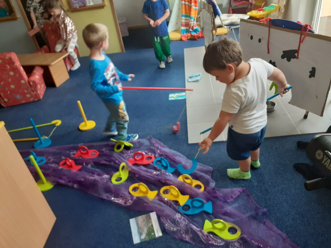Kouzelný kufr nás provázel i další březnový týden, kdy jsme si s dětmi připomněli blížící se prázdniny a cestování, které je určitě nejlepší strávit někde u vody. Voda byla ústředním tématem – vyráběli jsme si lodičky, vystřihovali kapky vody, dozvěděli jsme se proč je voda pro člověka tak důležitá, a proč si jí musíme vážit. V centrech aktivit jsme si vyzkoušeli různé pokusy s vodou, počítali kapky, hledali zvířata žijící u vody. Poznávali jsme, co plave, a co ne, určovali chutě vody slaná nebo sladká, a zkoušeli si do vody i zabublat, a učili se tak usměrnit výdechový proud určitým směrem. Hledali jsme v písku mušličky, a zahráli si na rybáře. Aktivit byla spousta a mnohé z nich nás opravdu bavily. Tak už ať je tu brzy léto a vodní radovánky mohou pokračovat!