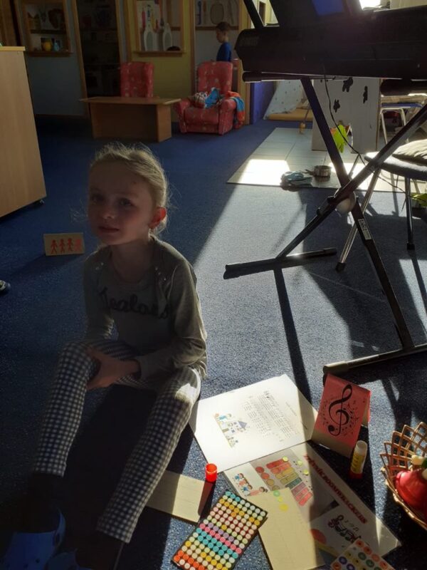 Den hudby jsme věnovali hrám a aktivitám směřujících k vyhledávání předmětů, které vydávají různé zvuky, k naslouchání zvuků kolem nás v místnosti i venku. Starší děti se seznamovaly s pojmy tón a všichni jsme si zahráli hry, při kterých jsme si mohli procvičit rozlišování vysokých a nízkých tónů. Děti hrály na hudební zvonky a nechybělo ani pozorování (pokusy) se zvukem. Děti byly poučeny o tom, jak chránit svůj sluch. Nechyběl samozřejmě ani tanec.