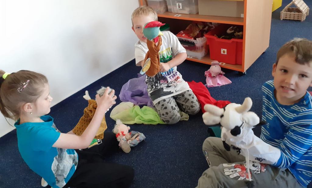 Pátek jsme věnovali projektovému dni a pohádce O červené řepě. Sklidili jsme naše rajčátka, která nám přes prázdniny uzrála a neuschla 🙂 a povídali jsme si o tom, co pěstujeme na našich zahrádkách doma. Hráli jsme si s maňásky, starší děti byly vedeny k samostatnému projevu a ty mladší ke schopnosti soustředěně naslouchat pohádce. Často jsme si připomínali, že se dílo lépe daří, když se zapojí všichni kamarádi. Děti řadily skutečnou řepu dle velikosti, čistily a strouhaly a následně se podílely na přípravě salátu z červené řepy. Hráli jsme si se slovy, tvořili jsme zdrobněliny, vysvětlovali jsme si pojmy vyjadřující rodinné vazby a hráli si na rodinu.