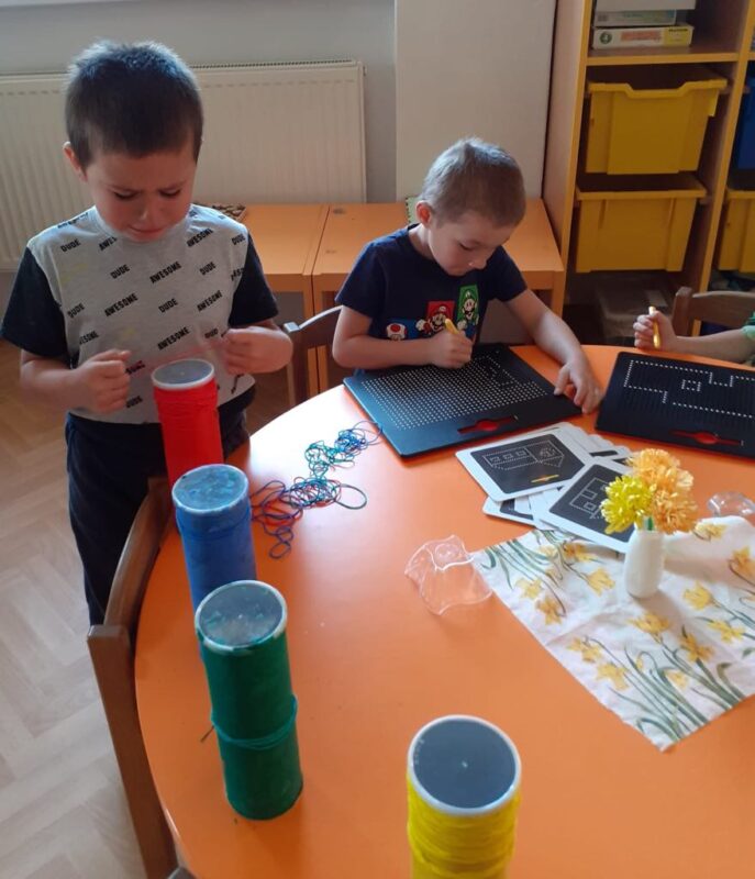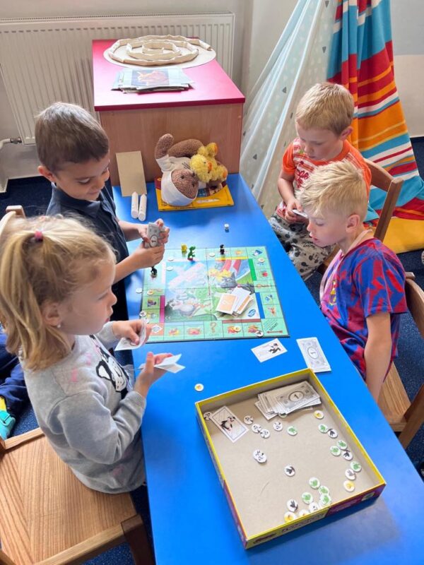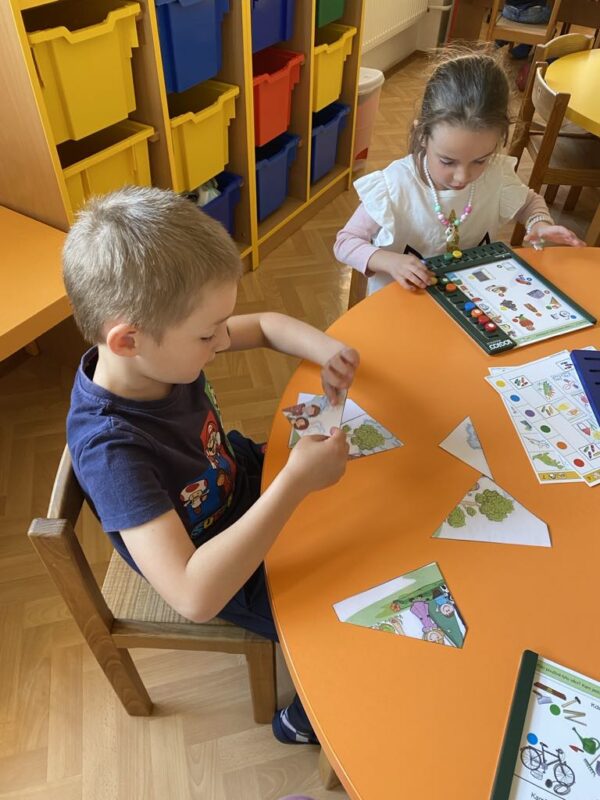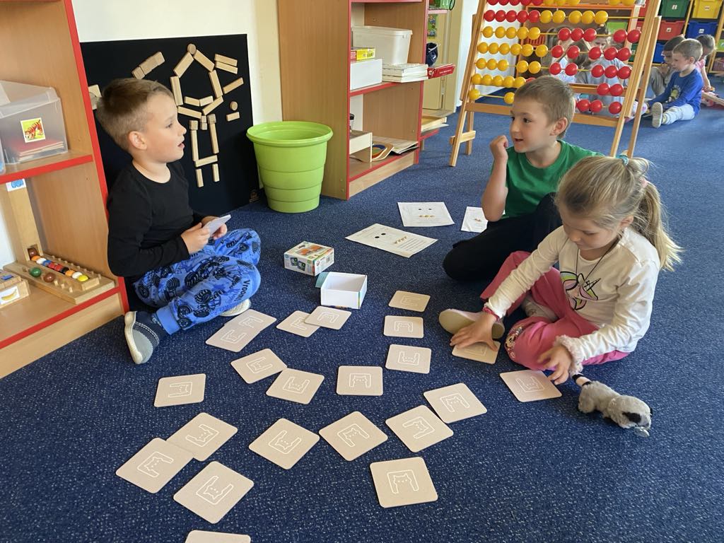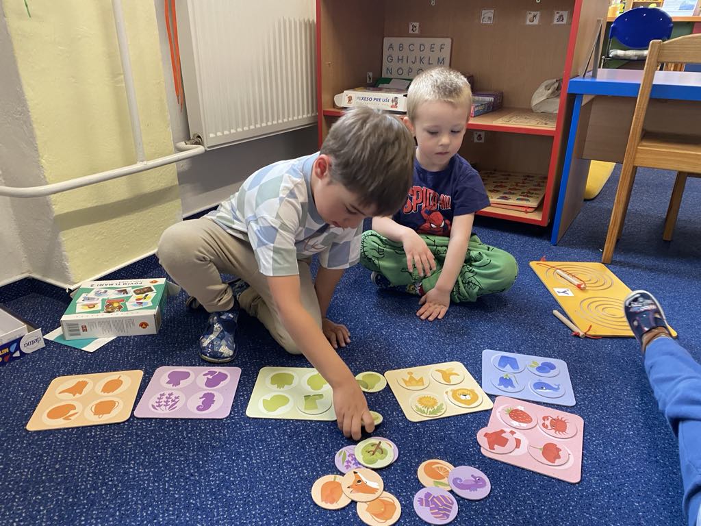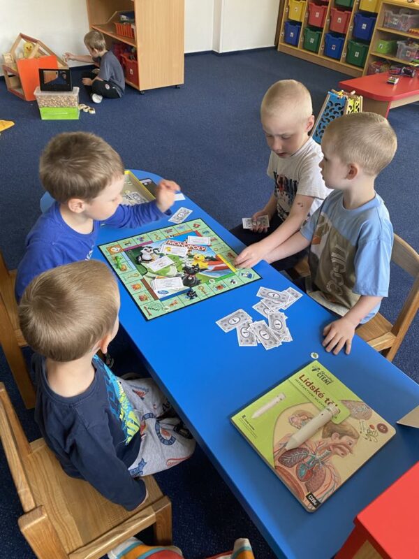 V tématu Hrajeme si, tvoříme a přitom se bavíme jsme se zaměřili na společenské hry – a musíme říct, že si je děti naprosto zamilovaly! Hraní deskových a karetních her není jen zábava, ale také skvělá příležitost k rozvoji celé řady důležitých dovedností. Děti si při hře nenápadně trénují logické myšlení a soustředění, počítání, barvy a tvary, komunikaci a dodržování pravidel a také spolupráci a schopnost zvládat výhru i prohru. Mezi nejoblíbenější hry patří Člověče, nezlob se, pexeso, Brainbox, Dobble, Monopoly, Bingo, skládací a logické hry. Tyto aktivity krásně rozvíjejí i sociální dovednosti, kdy se děti učí domlouvat, střídat se a povzbuzovat jeden druhého. Ve třídě jsou vytvořeny herní koutky, kde si děti mohou vybírat hry podle nálady a chuti. Hrajeme si ve dvojicích, ve skupinkách, a někdy i celá třída společně. Společenské hry se tak staly příjemnou součástí našich dnů – děti se u nich nejen baví, ale také učí vysvětlovat pravidla hry kamarádům. Těší nás, že si děti z hraní her odnášejí nejen smích a radost, ale i dovednosti, které využijí celý život.