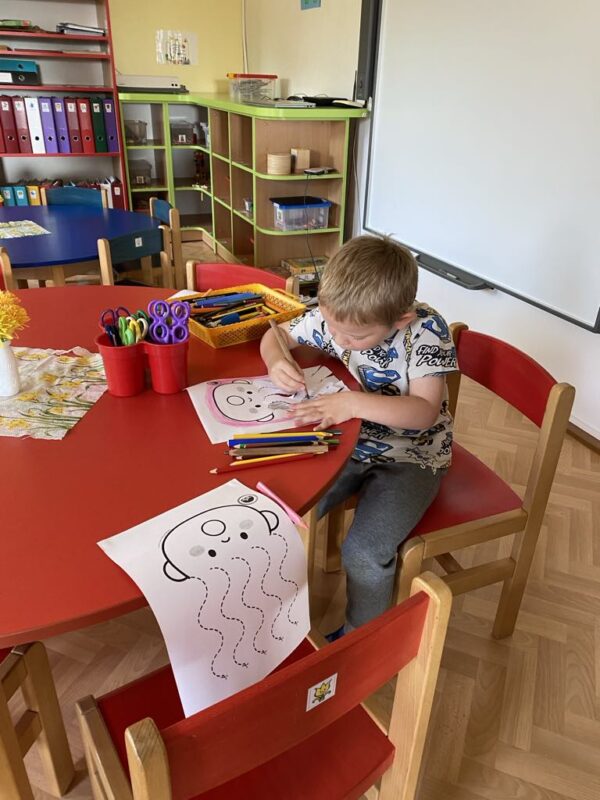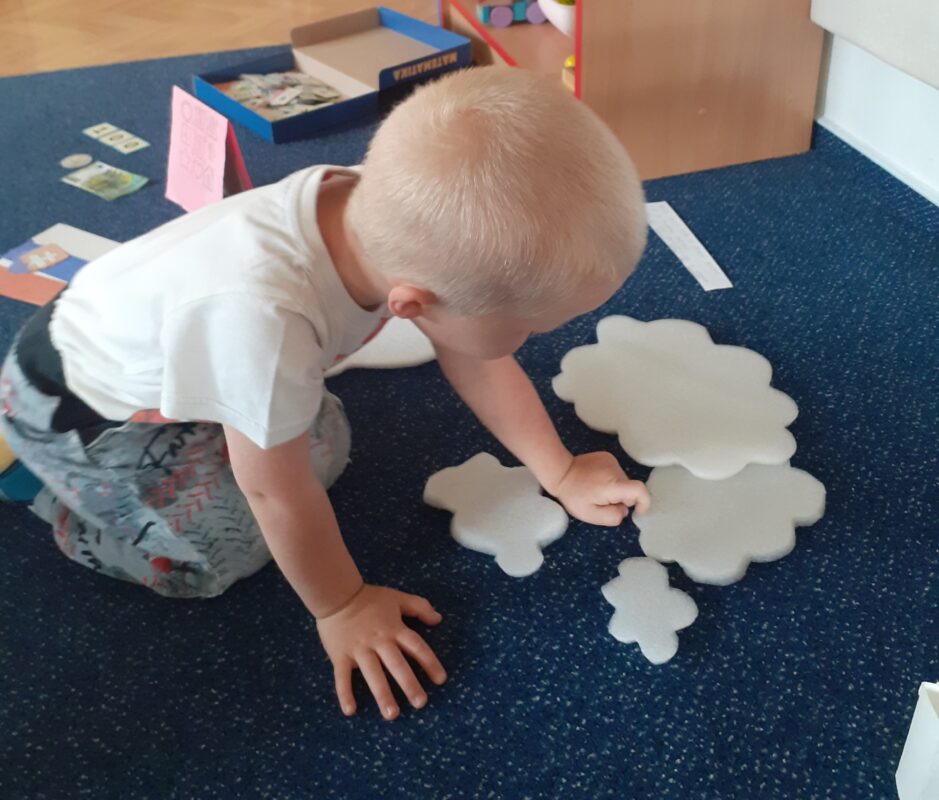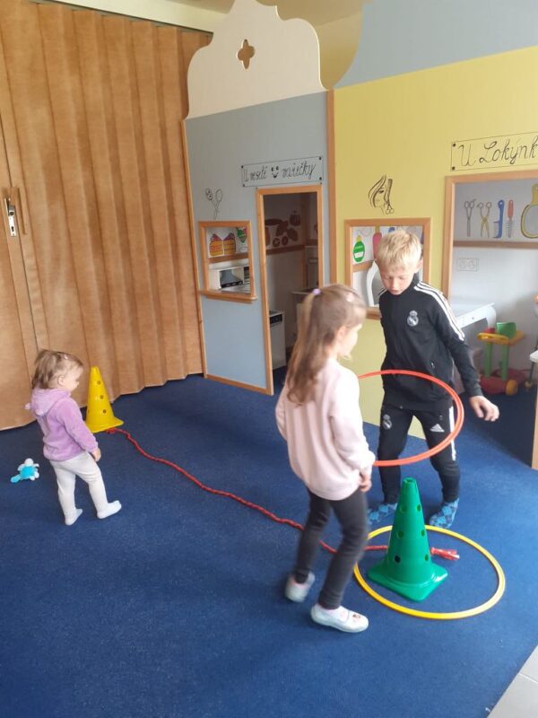 „Počasí je na draka“ – tato známá fráze dokonale vystihuje nevyzpytatelnost a proměnlivost podzimního počasí, které nás občas zaskočí. Ať už se jedná o nečekaný déšť, silný vítr nebo azurově modrou oblohu. Právě toto téma jsme si přiblížili v posledních říjnových dnech. Zkoušeli jsme různé pokusy – vytvářeli vítr fénem, pozorovali vznik páry v rychlovarné konvici, nafukovali balónky a sledovali, jaké změny zvládne teplý vzduch. Podzimní změny počasí jsme viděli i v přírodě, kdy už většina stromů přišla o krásně zbarvené listy ve svých korunách, a mohli jsme pozorovat i mokrou trávu, která vysychá díky chladnějším ránům později. Připomněli jsme si, jaké oblečení již na podzim potřebujeme, aby nám nebyla zima, a samozřejmě nemohli chybět ani draci, které pouštíme právě díky podzimním větrům. Ty jsme skládali z geometrických tvarů, porovnávali, který je delší nebo kratší, určovali hononyma, a pantomimicky ztvárňovali, jakou náladu může drak mít. Snad nám slunečné počasí ještě vydrží co nejdéle, a podzimní plískanice přijdou co nejpozději.