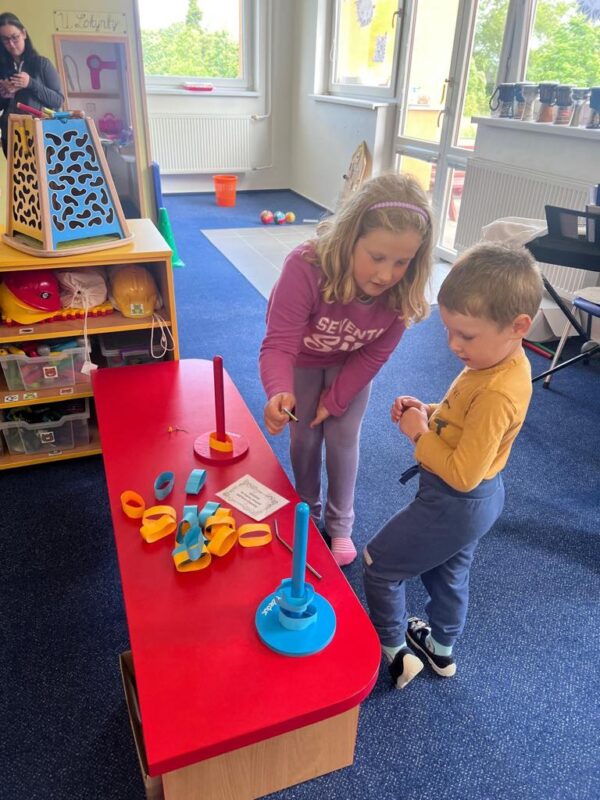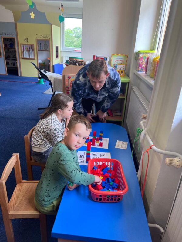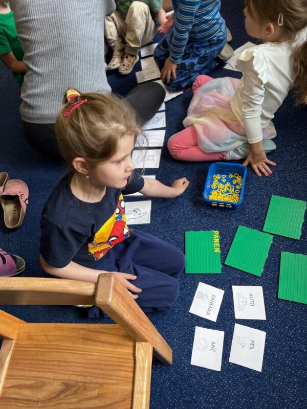Ve středu 9. dubna jsme s našimi předškoláky a staršími dětmi zavítali do první třídy, aby si mohli prohlédnout, jak vypadá výuka na základní škole. Děti měly možnost nejen sledovat, ale také se aktivně zapojit do různých činností, které je čekají v úvodu školního roku. Společně jsme trénovali jemnou motoriku, sluchovou analýzu, rozeznávání první hlásky, vytleskávání slabik, určování počtu prvků a sestavování číselné řady. Děti si také vyzkoušely stavbu z kostek dle předlohy a protáhly se při oblíbené józe. Prvňáčci pak budoucím školákům ukázali, co se už během roku naučili – předvedli čtení, psaní i počítání a sdíleli různé zábavné hry, které k učení patří. Tato návštěva byla pro děti skvělou příležitostí seznámit se se školním prostředím a získat motivaci a nadšení pro vstup do první třídy.