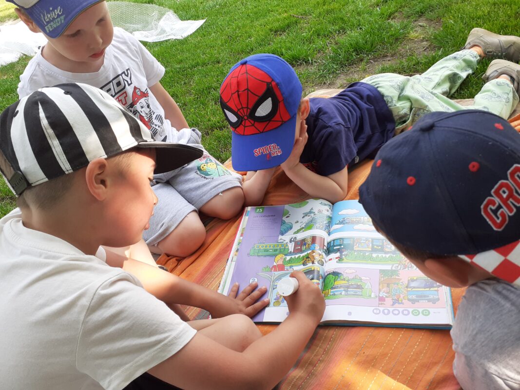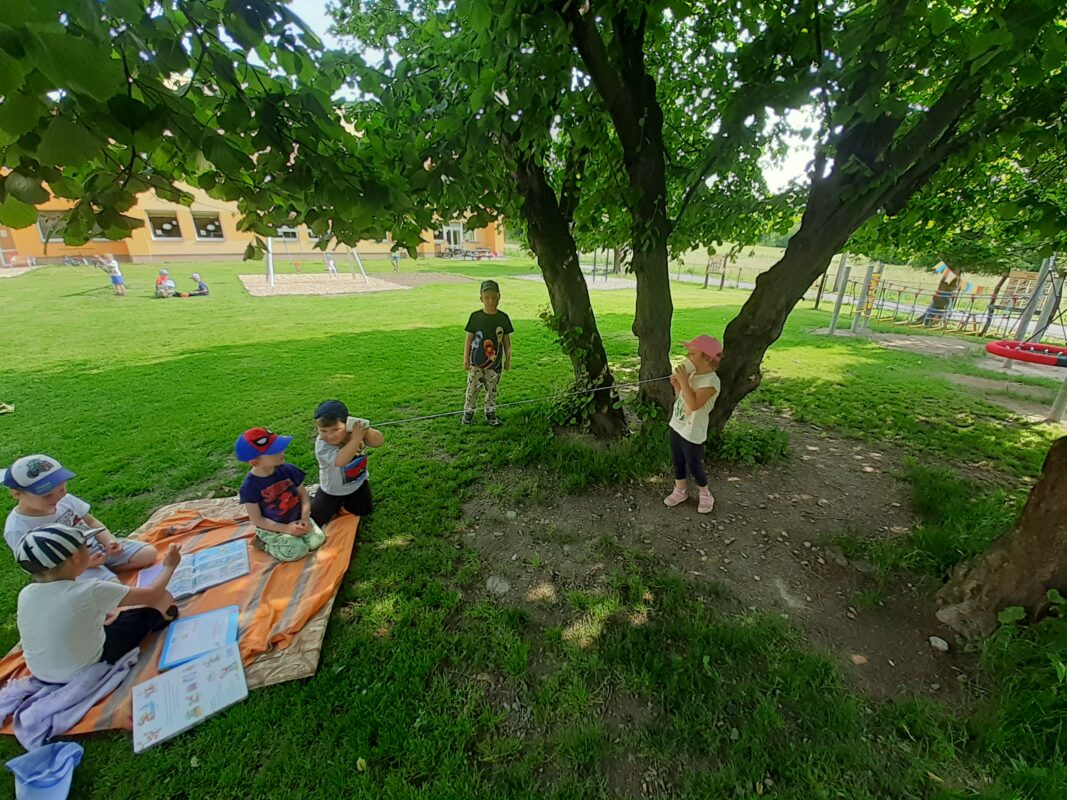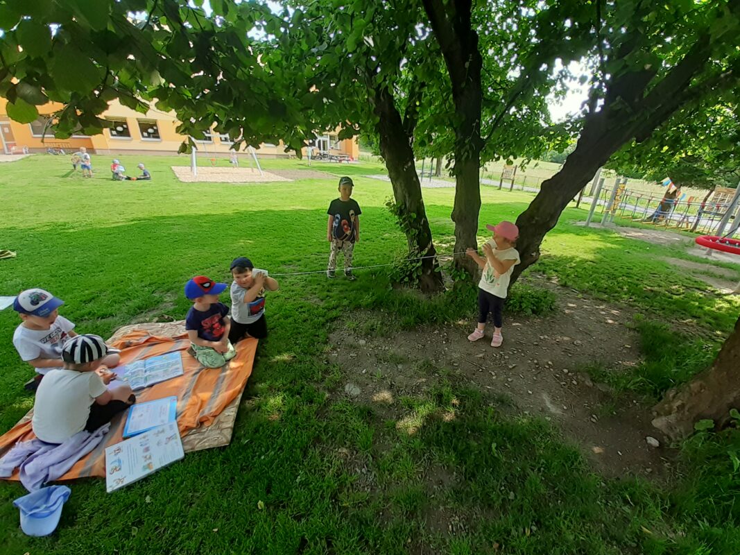 Během realizace čtrnáctidenního tématu „Poznáváme ekosystémy – louku, les a rybník“ jsme se společně s kamarády z MŠ Vysoká vypravili na výlet k rybníku „Celňák“. Naše výprava byla o to zajímavější, protože jsme plnili úkoly vodní víly Evelínky, která si pro nás připravila naučnou stezku. Aktivity byly nejen sportovní, ale zároveň jsme si vyzkoušeli různé pokusy s vodou, poznávali zvířata a rostliny žijící u vody, zkoumali a pozorovali hmyz, květiny, procvičovali jemnou motoriku rukou, nebo zdobili motýly květinami. Určovali jsme barvičky, zaskákali si panáka – vodníka a samozřejmě jsme se nejvíce těšili na samotný rybník. Ten se nám na konci stezky ukázal v celé kráse, a mohli jsme pozorovat hnízdící kačeny. Jen toho vodníka jsme nikde neviděli, tak možná příště budeme mít větší štěstí🙂.