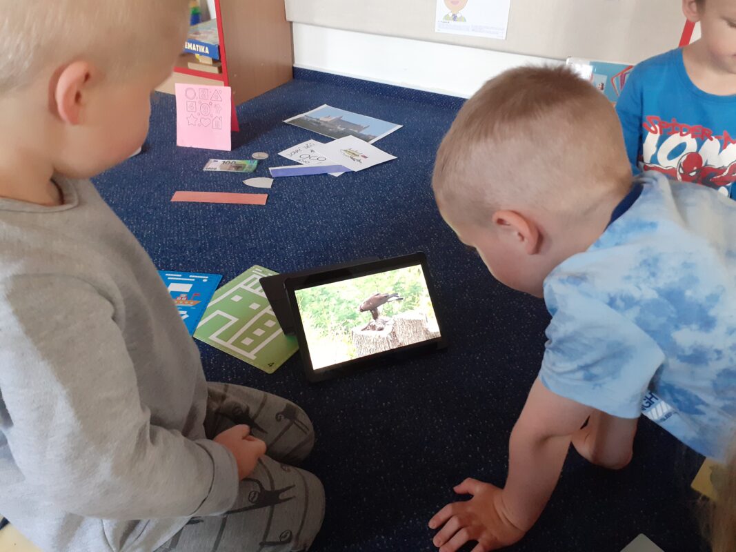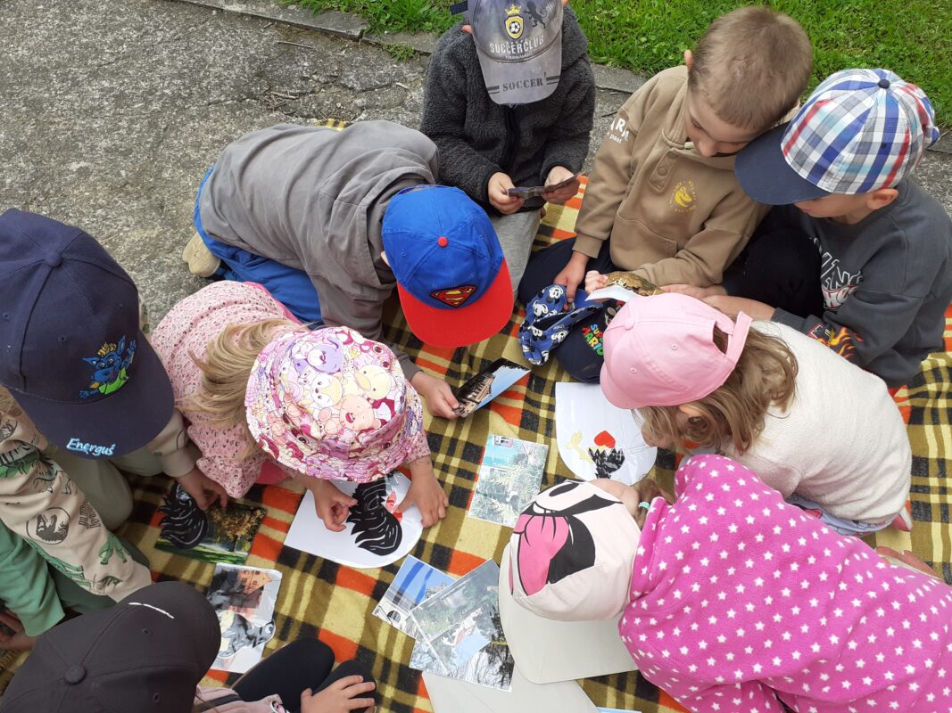 K povídání o lese a stromech neodmyslitelně patří myslivost. Obrovské poděkování patří panu Jiřímu Krušinovi, který navštívil naši mateřinku. Dětem popovídal o významu lesa pro zvěř a člověka samotného, přinesl také spoustu k vidění. Děti zaujaly nejen shozy lesní zvěře, ale především samotné vypravování „pana myslivce“. Děti si zopakovaly názvy keřů a stromů, přiřazovaly plody k jednotlivým stromům. Měly možnost pozorovat okolí naší školní zahrady pomocí dalekohledu. Starší děti vydržely až do konce povídání, mladší děti si měly možnost her a volného pohybu po zahradě.