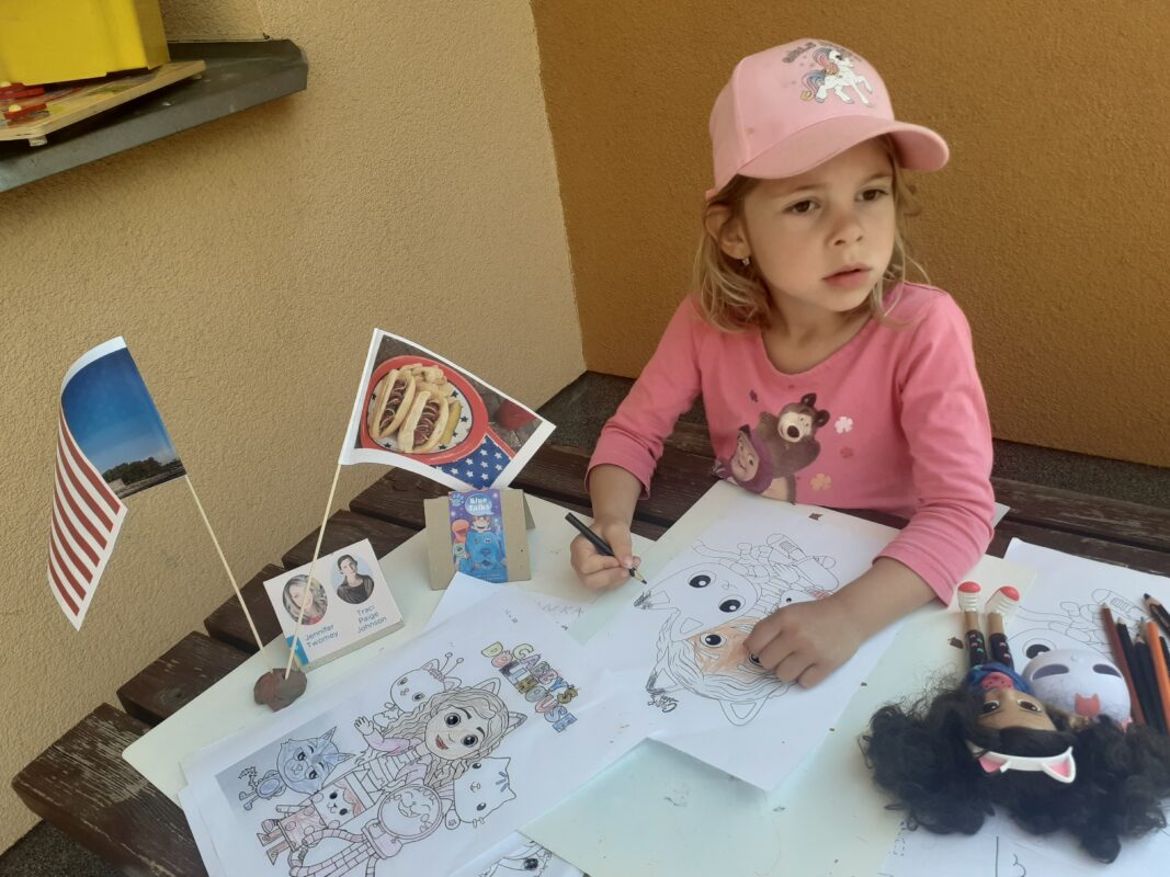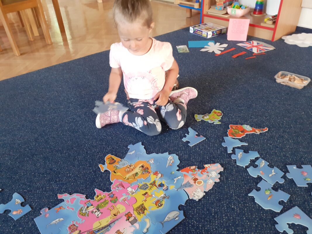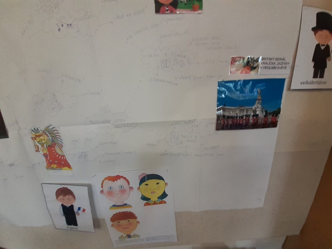 Téměř poslední téma si zvládly „sestavit“ děti na míru. Paní učitelky zaznamenávaly, co by se děti chtěly dozvědět, co by si chtěly vyzkoušet. A tak jsme cestovaly křížem krážem z Evropy až do Ameriky. Děti ochutnaly typická jídla pro Slovensko nebo Anglii. Seznamovaly se s názvy měst, řek nebo s významnými stavbami. Pamatují si ještě, odkud pochází Bing nebo panenka Gabi? Ví, na co se z okna mohou dívat jejich tvůrci? Zeptejte se jich :-). Děti si zkoušely natočit krátký film, tvořily čelenku nebo korunu, malovaly, stříhaly, naslouchaly cizím jazykům a hlavně se učily, že každý je vyjímečný.