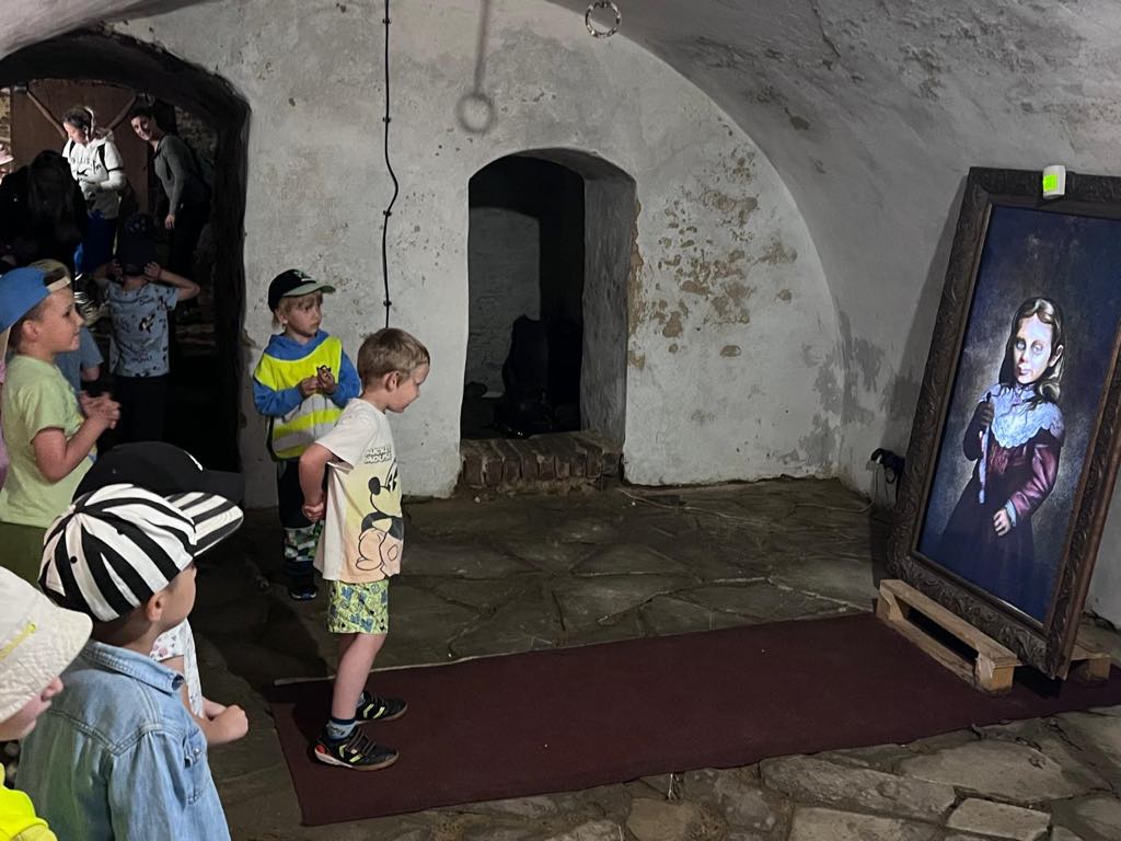 Naším hlavním cílem byla návštěva místní Rychty, která nás naprosto okouzlila. Děti velmi zaujaly strašidelné obrazy postav, které se pohybovaly a vydávaly tajuplné zvuky. I když vypadaly opravdu hrůzostrašně, děti byly statečné a některé si dokonce chtěly prohlídku zopakovat!
