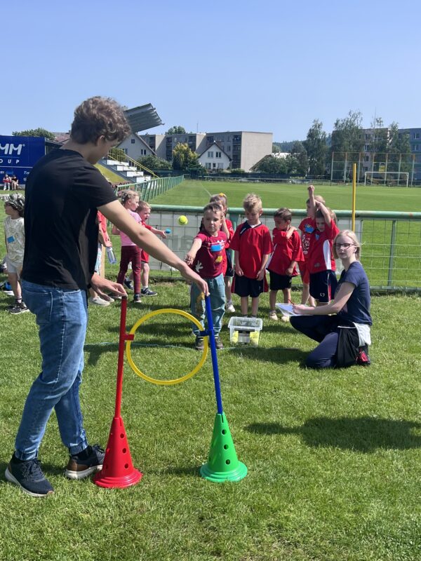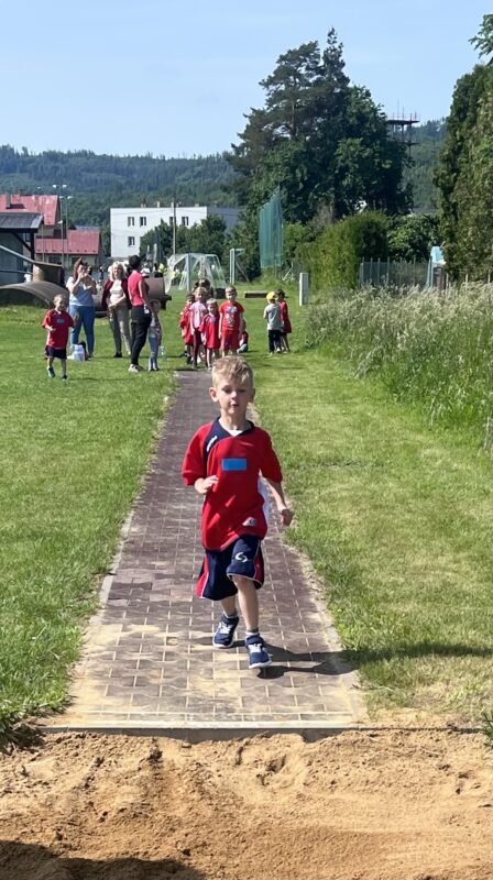 Hřiště v Městě Albrechticích se ve středu 4. června dopoledne proměnilo v dějiště mezinárodní sportovní olympiády dětí z mateřských škol. Akce, která je součástí přeshraničního projektu Učíme se spolupracovat, přivítala malé sportovce z České republiky i Polska. Soutěžního klání se zúčastnily týmy z MŠ Město Albrechtice, Lacznik (Polsko), Slezské Rudoltice, Třemešná, Liptaň, Holčovice a Jindřichov. Mezinárodní rozměr podtrhla účast dětí z obce Lacznik. Po zahájení se jednotlivé týmy rozptýlily po sportovních stanovištích. Všichni sportovci se postupně utkali ve skoku do dálky, štafetovém běhu s překážkami, hodu míčkem do kruhu a dalších disciplínách, které prověřily jejich rychlost, obratnost i týmovou spolupráci. Motivaci k lepším výkonům jsme měli v našem bojovém pokřiku: „V týmu budem sportovat, chceme všechny překonat. Společně je převezem, pohár domů přivezem!“, který nám nakonec zajistil i diplom za nejlepší bojový pokřik. Atmosféra na hřišti byla úžasná, a všechny děti si nakonec odvážely krásné zážitky, medaile i odměny, ať už byly vítězi, či ne. Děkujeme všem zúčastněným dětem z MŠ Jindřichov za jejich odhodlání, houževnatost i snahu, kterou do plnění všech displicín vložily, a příští rok se olympiády určitě zúčastníme znovu – tentokrát v Holčovicích.