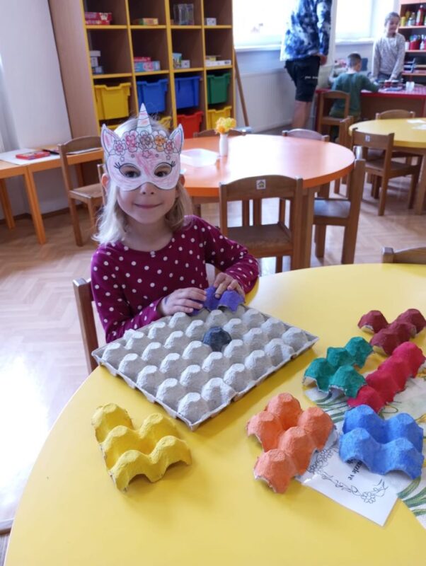 První dubnové dny jsme ve školce věnovali hospodářským a domácím zvířatům a jejich mláďatům, která jsou i symboly blížících se Velikonoc. Hráli jsme si na farmáře, vytvářeli film o farmaření na tabletech, zvířátka ztvárňovali různými výtvarnými technikami. Poznávali, čím se živí, jaké mají pokrytí těla, v logopedických chvilkách procvičovali, jaké zvuky vydávají. Vytváříme i vejce technikou kašírování, abychom se s ním zúčastnili výtvarné soutěže. Vejce jsme použili i při různých pokusech, a ochutnávali v mnoha podobách. Nezapomněli jsme ani zasadit velikonoční osení, které dlouhodobě pozorujeme, abychom viděli, co vyroste ze semínka. Podařilo se nám vypěstovat nové zárodky stromků z plodů žaludů. Venku už se nám hlásí teplé jarní počasí, a tak nezapomínáme ani pořádně protáhnout svá tělíčka, jak ve školce, tak na zahradě nebo lezením na stromy. Poslední dny před velikonočními svátky jsme věnovali velikonočním zvykům a tradicím, ukázali si opravdovou pomlázku – tatar, a nemohlo chybět ani velikonoční tvoření s barvením vajíček. Chlapcům přejeme bohatou pomlázku, a všem holčičkám, ať mají hodně koledníků, kteří jim na příští rok zajistí zdraví a krásu :o).