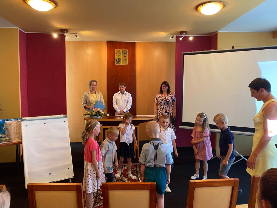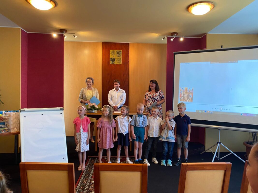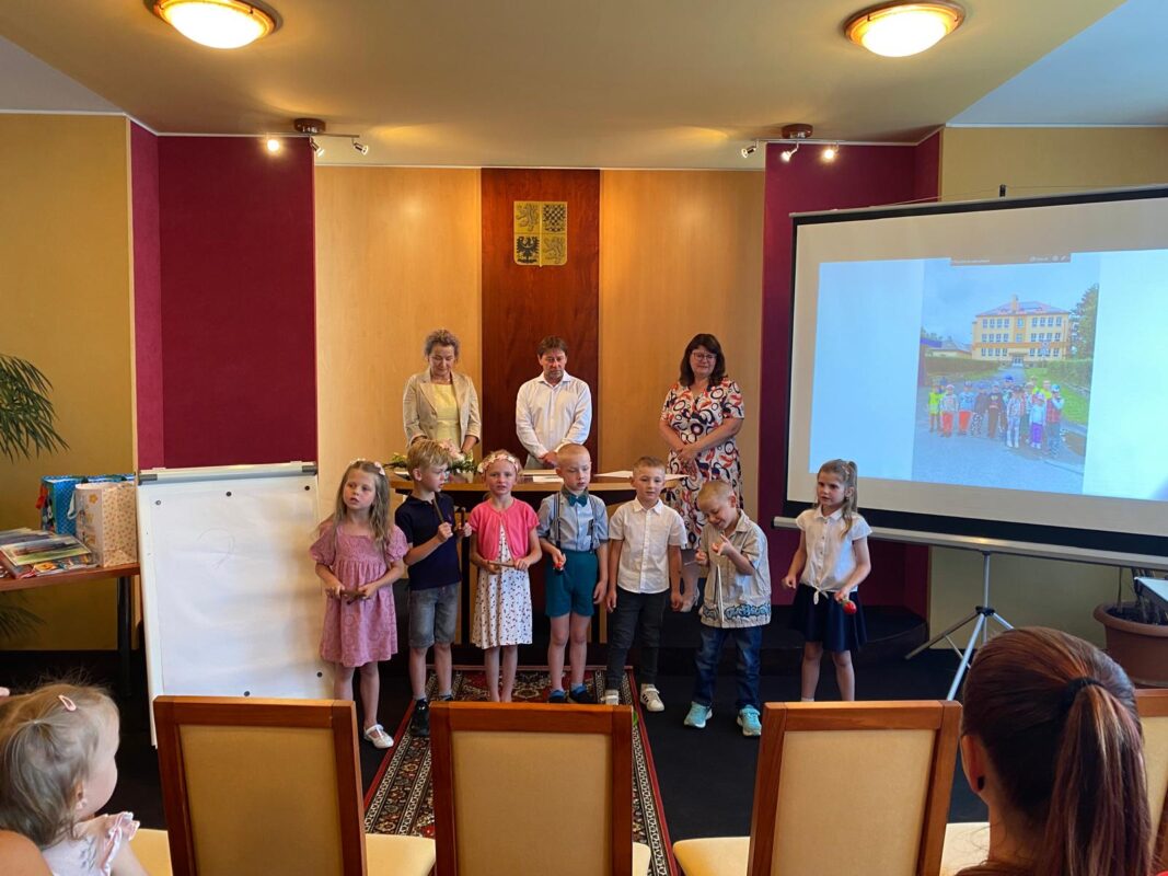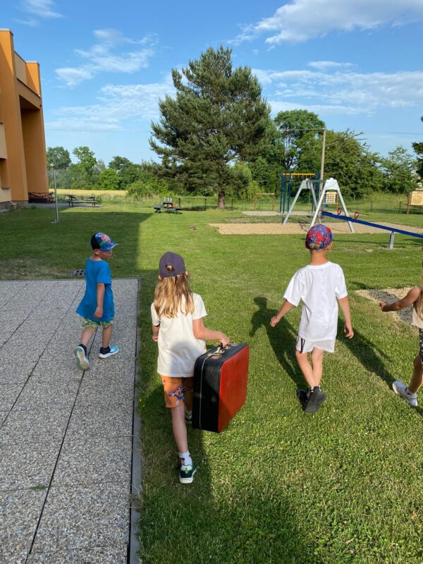 Ve čtvrtek jsme se s našimi budoucími prvňáčky rozloučili na obecním úřadě. Po krátkém vystoupení dětí k zákonným zástupcům i dětem hovořila paní ředitelka a pan starosta. Děti dostaly dárečky od obecního úřadu i ZŠ. Někteří stateční předškoláci s námi přenocovali ve školce. Odpoledne jsme hledali poklad kolem školy. Když jsme našli kouzelný kufr, zjistili jsme, že chybí klíč. A když jsme našli klíč, zjistili jsme……, že někteří kamarádi už jsou v mateřince naposledy. Pořádně jsme to oslavili a konec školního roku si užili. Po pořádném „mejdanu“ jsme po sobě nezapomněli uklidit :-).