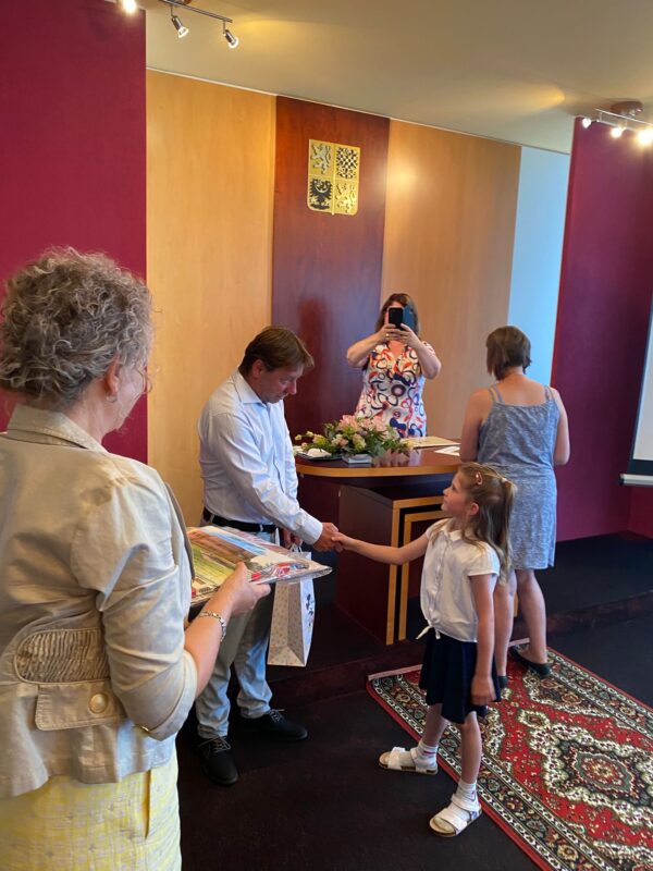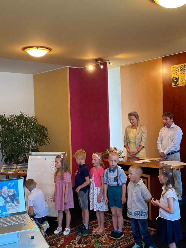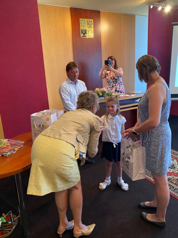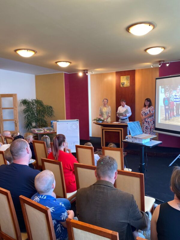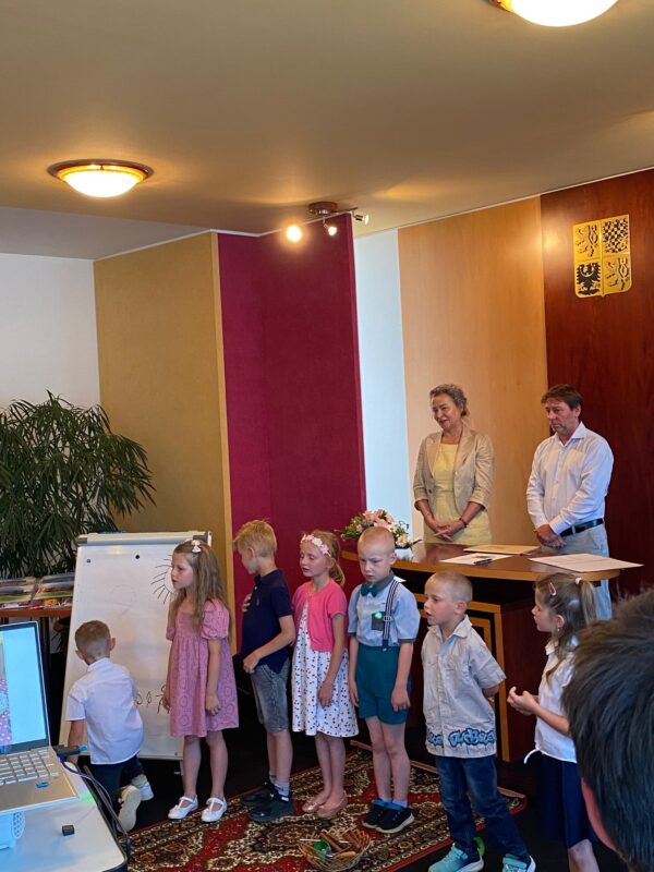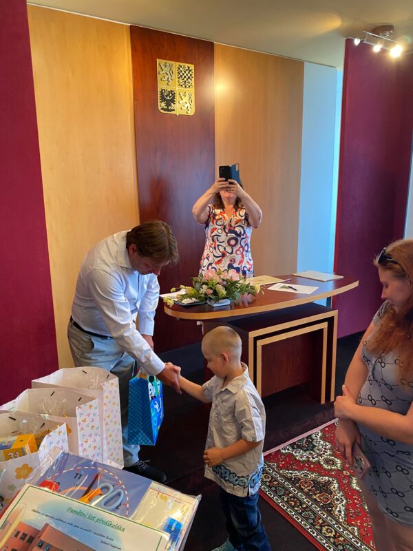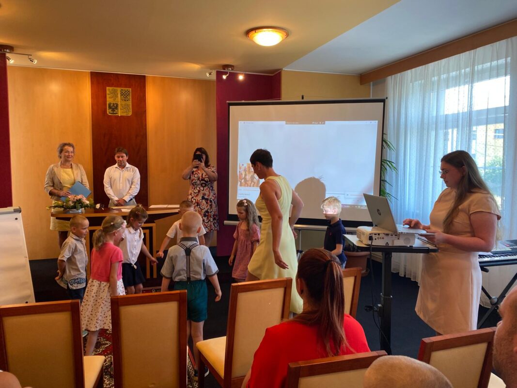 Ve čtvrtek jsme se s našimi budoucími prvňáčky rozloučili na obecním úřadě. Po krátkém vystoupení dětí k zákonným zástupcům i dětem hovořila paní ředitelka a pan starosta. Děti dostaly dárečky od obecního úřadu i ZŠ. Někteří stateční předškoláci s námi přenocovali ve školce. Odpoledne jsme hledali poklad kolem školy. Když jsme našli kouzelný kufr, zjistili jsme, že chybí klíč. A když jsme našli klíč, zjistili jsme……, že někteří kamarádi už jsou v mateřince naposledy. Pořádně jsme to oslavili a konec školního roku si užili. Po pořádném „mejdanu“ jsme po sobě nezapomněli uklidit :-).