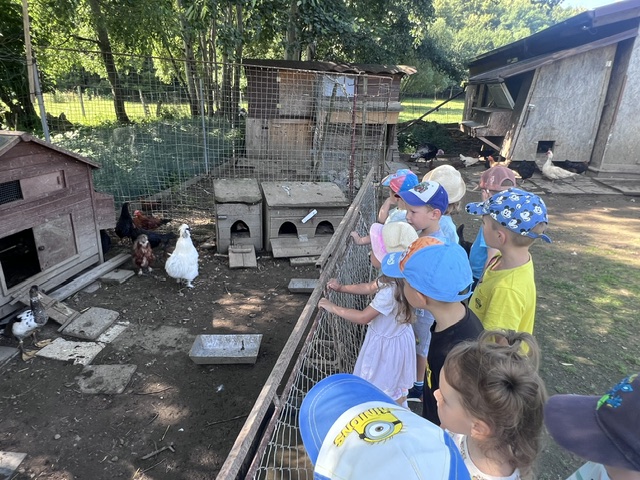 Prázdniny nám utíkají jako voda a lákají k různým výletům a dobrodružstvím. Proto jsme ve školce využili pěkného počasí a šli navštívit kozí farmu v Arnultovicích. Zde nás přivítal pan majitel, a ukázal nám všechna hospodářská zvířátka. Seznámili jsme se s chovem koz – viděli, kde spí, co jí, dozvěděli, jakou mají povahu a co mají rády. Další jsme si mohli prohlédnout krocany, různé druhy slepic, kačeny, husy a na všechny tyto dohlížely dvě border kolie, které dbaly na to, aby bylo vše, tak jak má. Výlet se nám moc líbil, kozičky byly velmi přítulné, a tak jsme jim tam na rozloučenou nechali jako pamlsek pytlík mrkviček od p. učitelky Miriamky. Musíme pochválit i všechny děti, které zvládly ujít až na malý kousek celou trasu výletu pěšky a byly moc a moc šikovné.