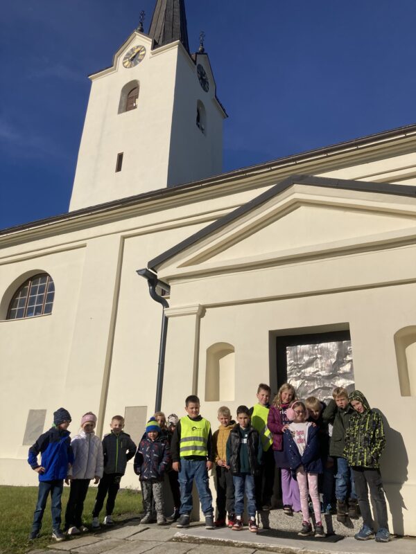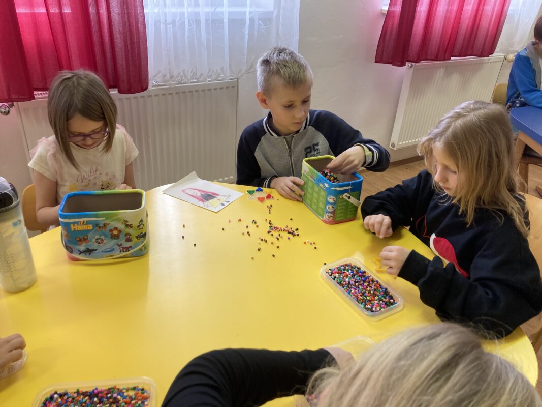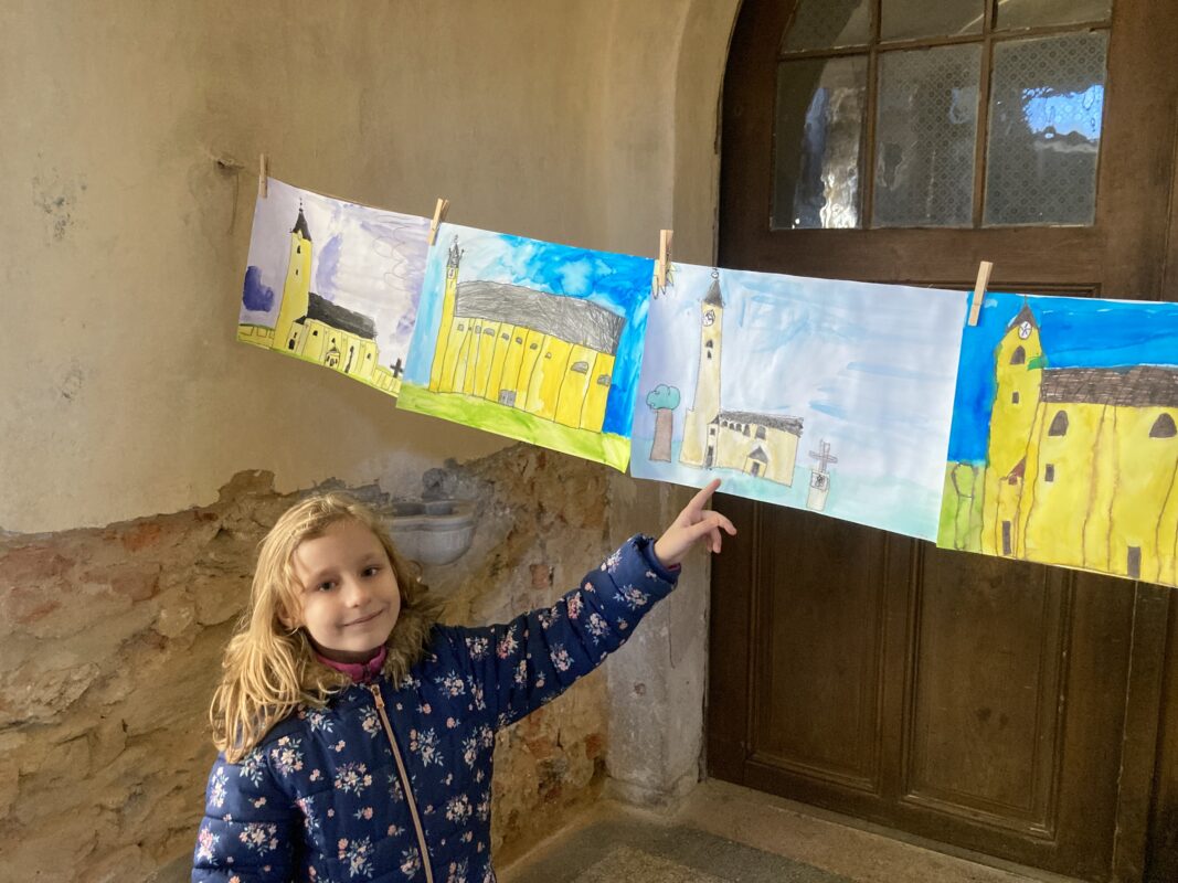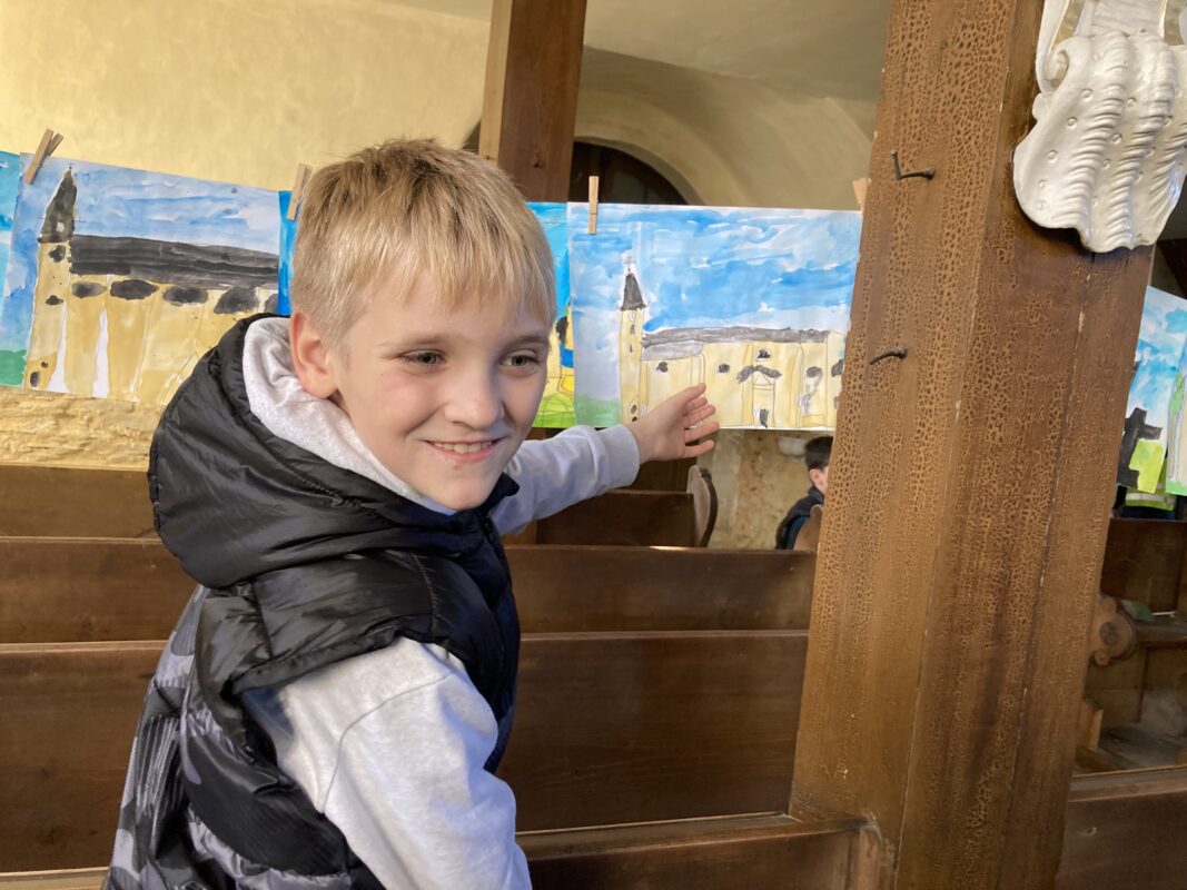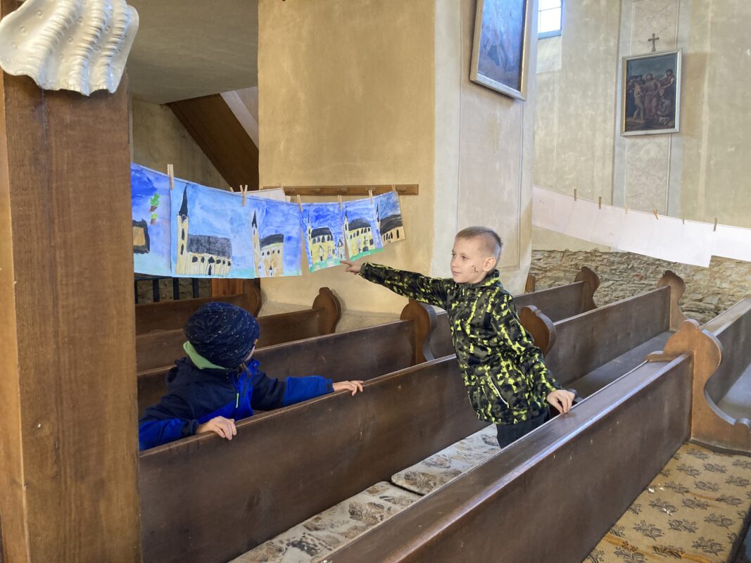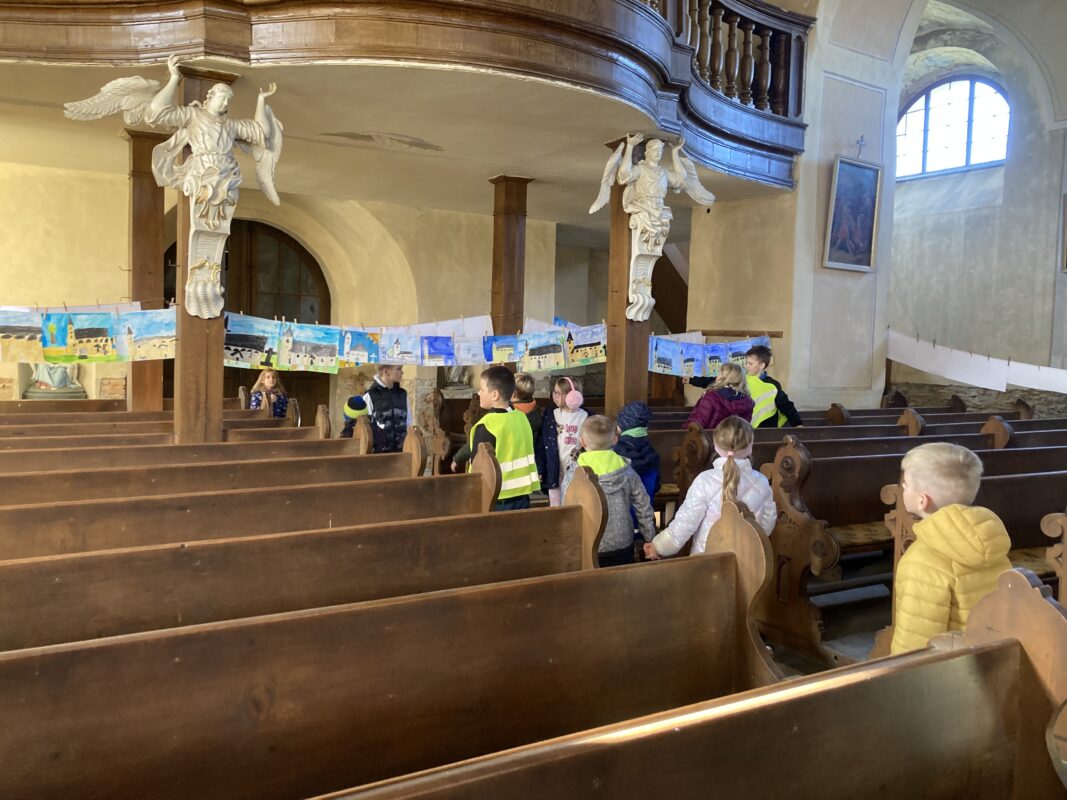 - Návštěva místního kostela – prohlídka obrazů od žáků ze ZŠ